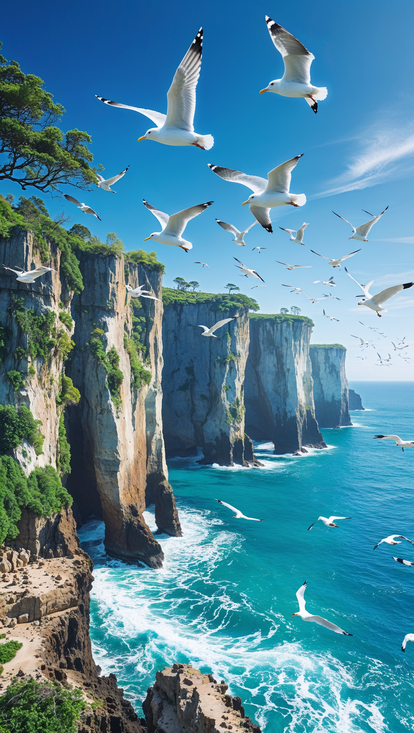 Vertical wallpaper of ocean and cliffs with birds flying above, natural and free 1664x2944 Vertical wallpaper of ocean and cliffs with birds flying above, natural and free