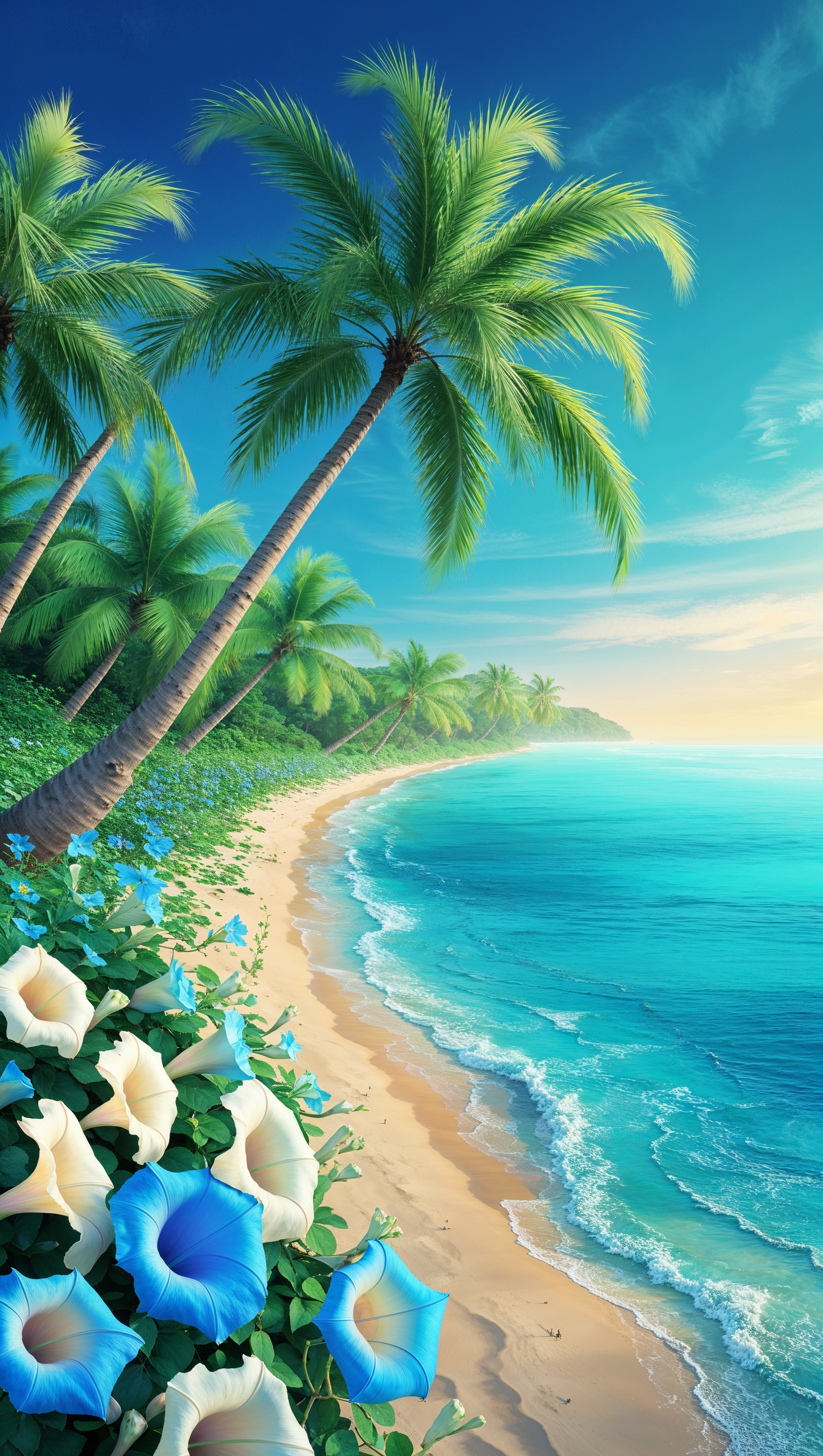 Tropical ocean scene with palm trees on shoreline and vibrant blue water 1664x2944 Tropical ocean scene with palm trees on shoreline and vibrant blue water