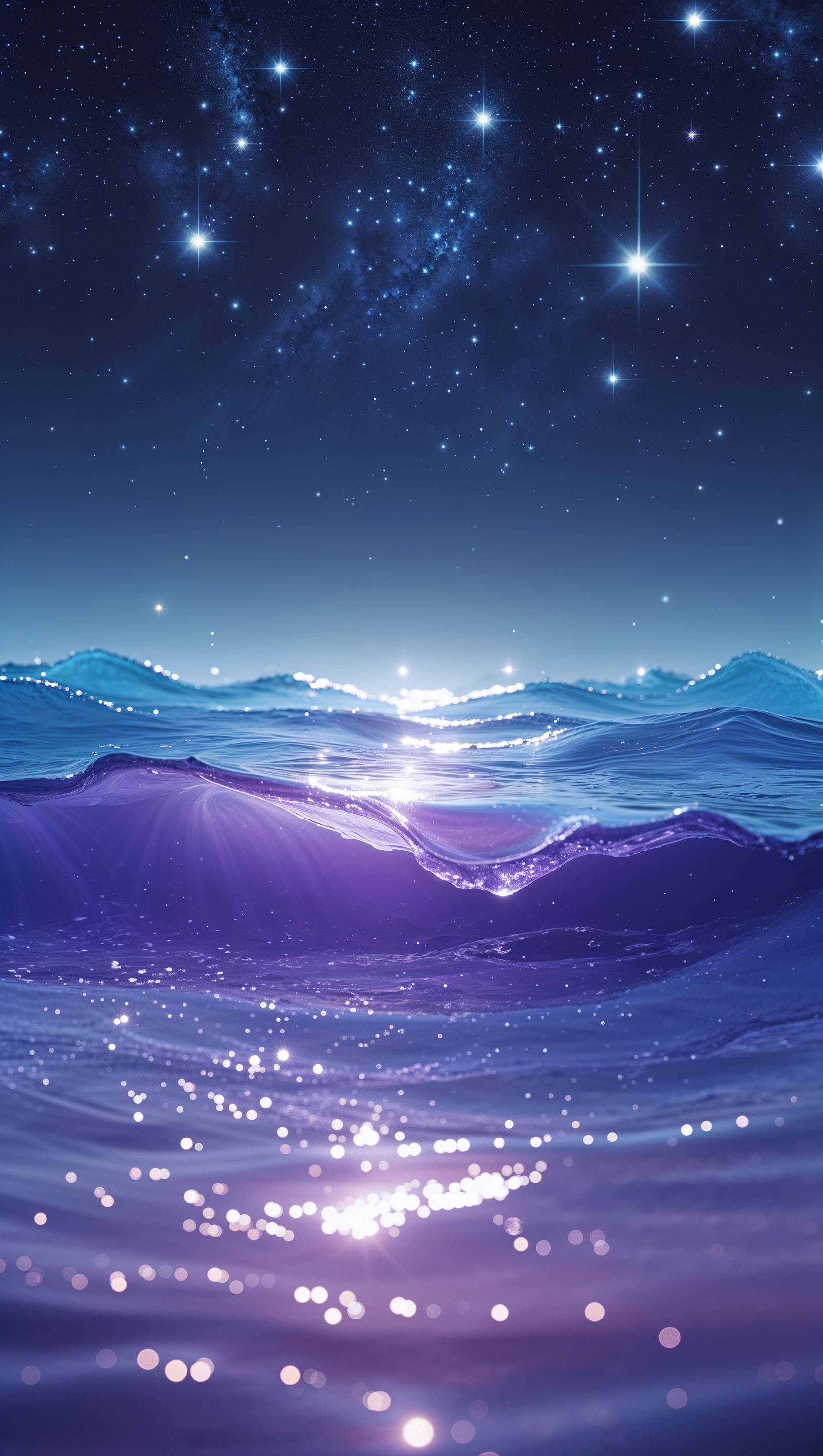 A crystal ocean under a sky full of stars, cosmic and spiritual feeling 1664x2944 A crystal ocean under a sky full of stars, cosmic and spiritual feeling