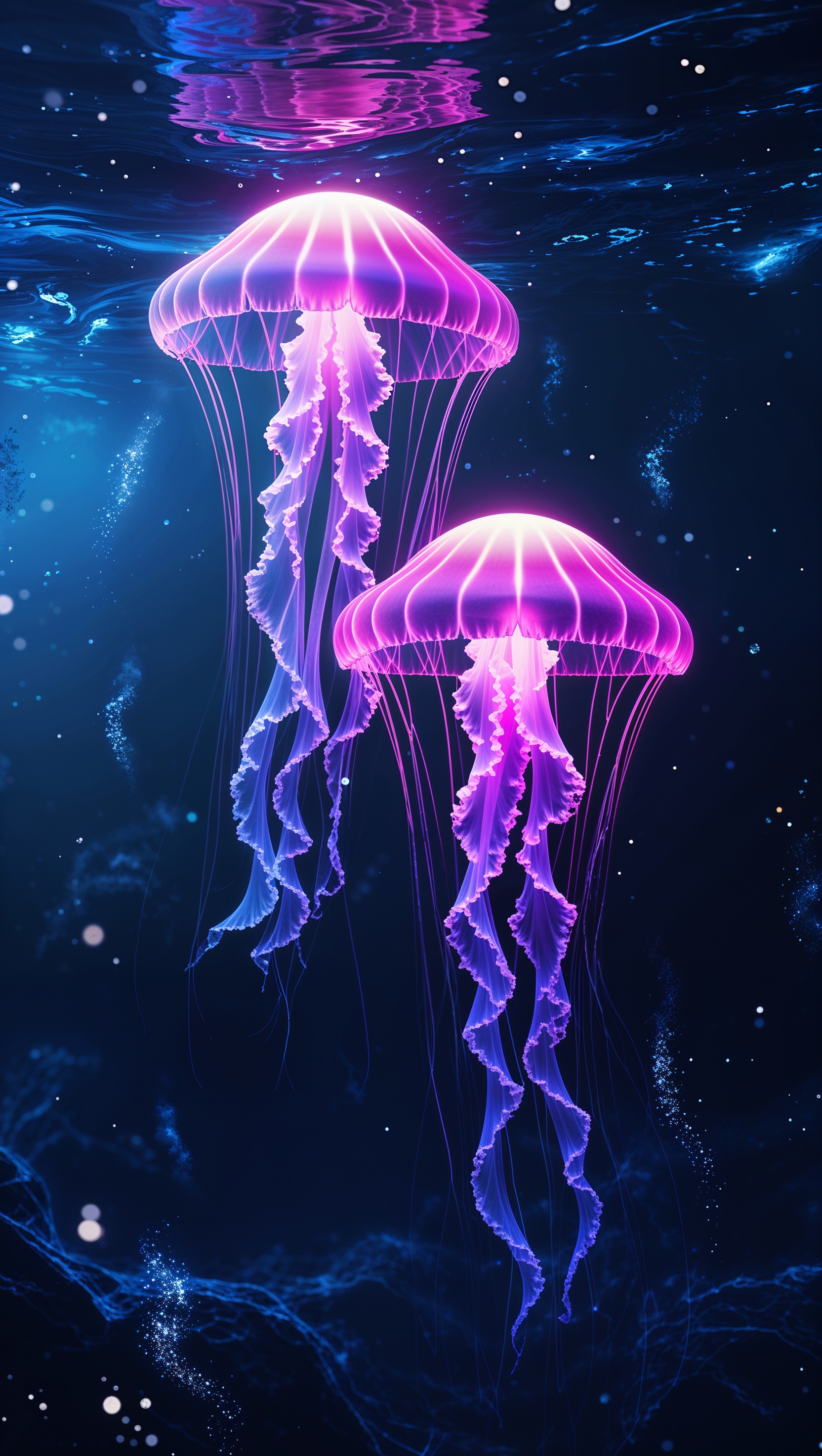 Ocean-themed digital art with glowing jellyfish floating in deep blue water 1664x2944 Ocean-themed digital art with glowing jellyfish floating in deep blue water