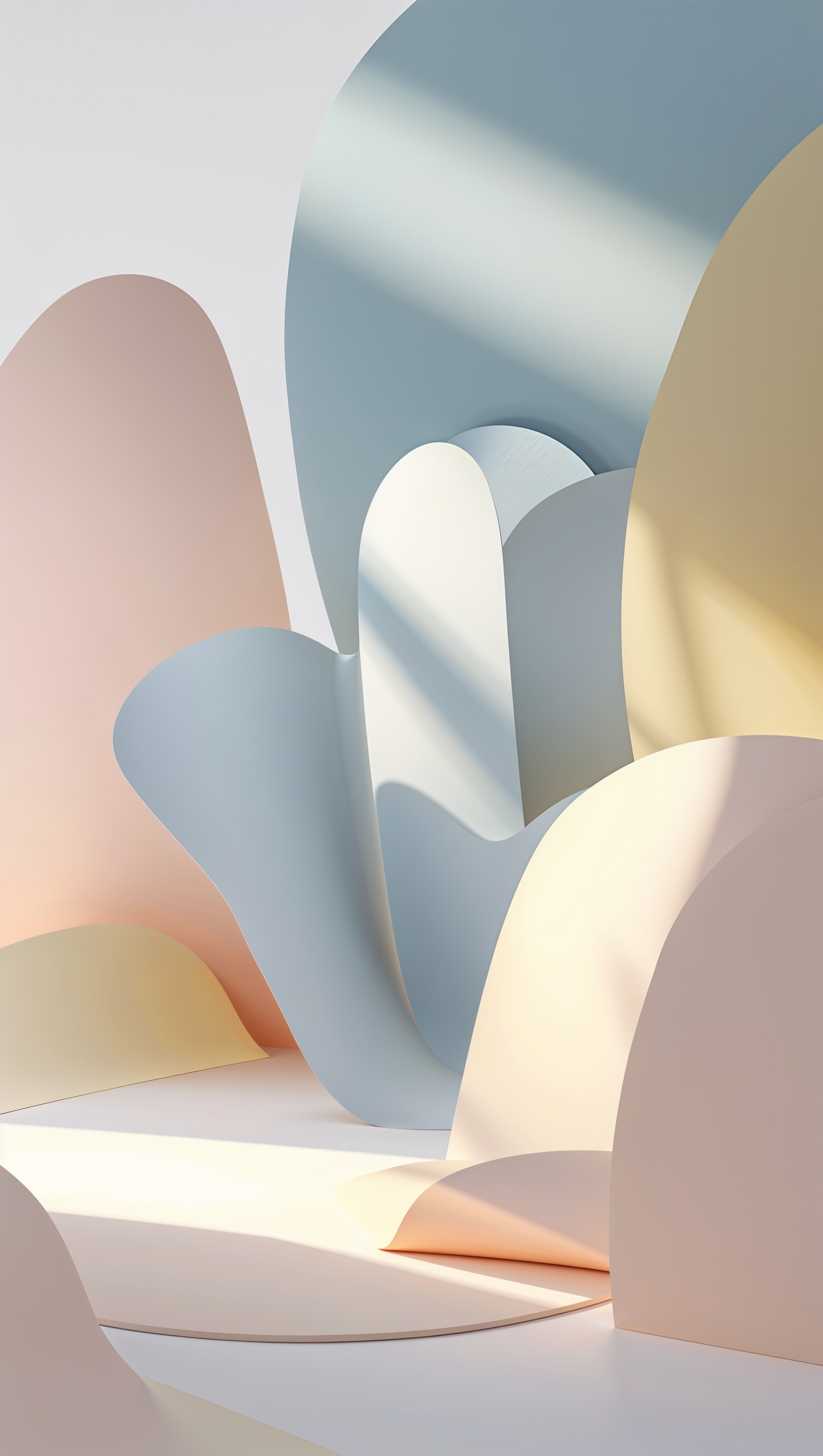 Minimal abstract pastel shapes overlapping with soft shadows, clean iPhone format 1664x2944 Minimal abstract pastel shapes overlapping with soft shadows, clean iPhone format