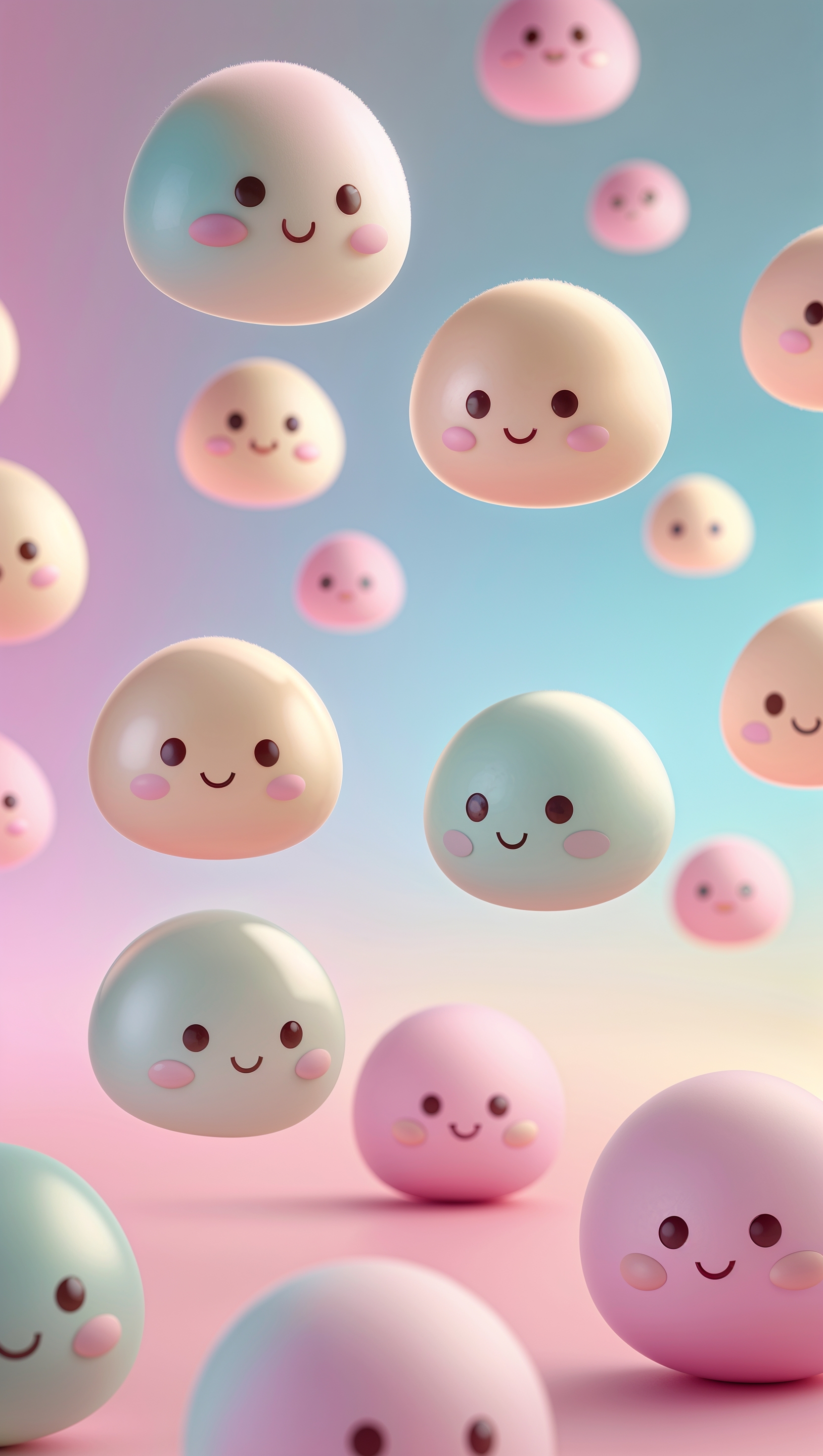 Cute pastel cartoon icons floating on a soft pink-blue background 1664x2944 Cute pastel cartoon icons floating on a soft pink-blue background