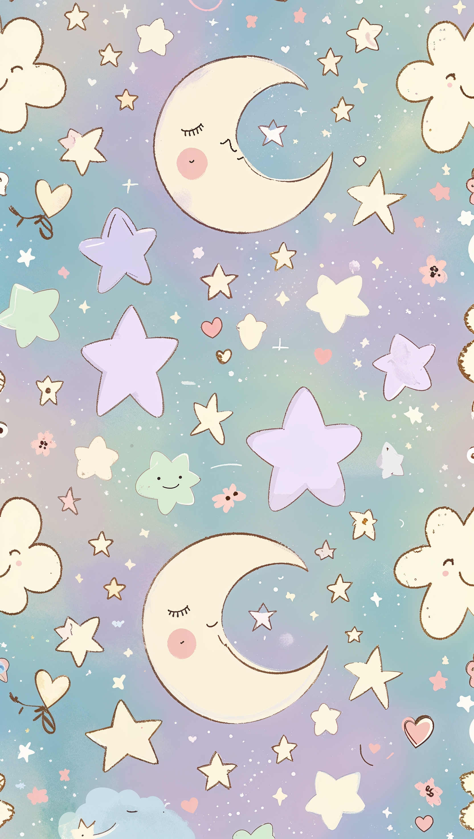 Pastel-themed kawaii background with stars, moons, and happy doodles 1664x2944 Pastel-themed kawaii background with stars, moons, and happy doodles