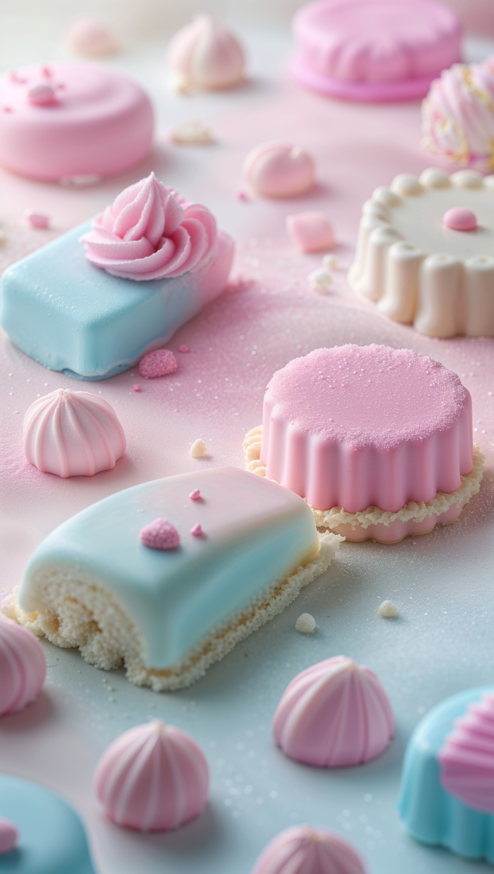 Sweet pastel candy background with soft pinks, baby blues, and creamy tones 1664x2944 Sweet pastel candy background with soft pinks, baby blues, and creamy tones