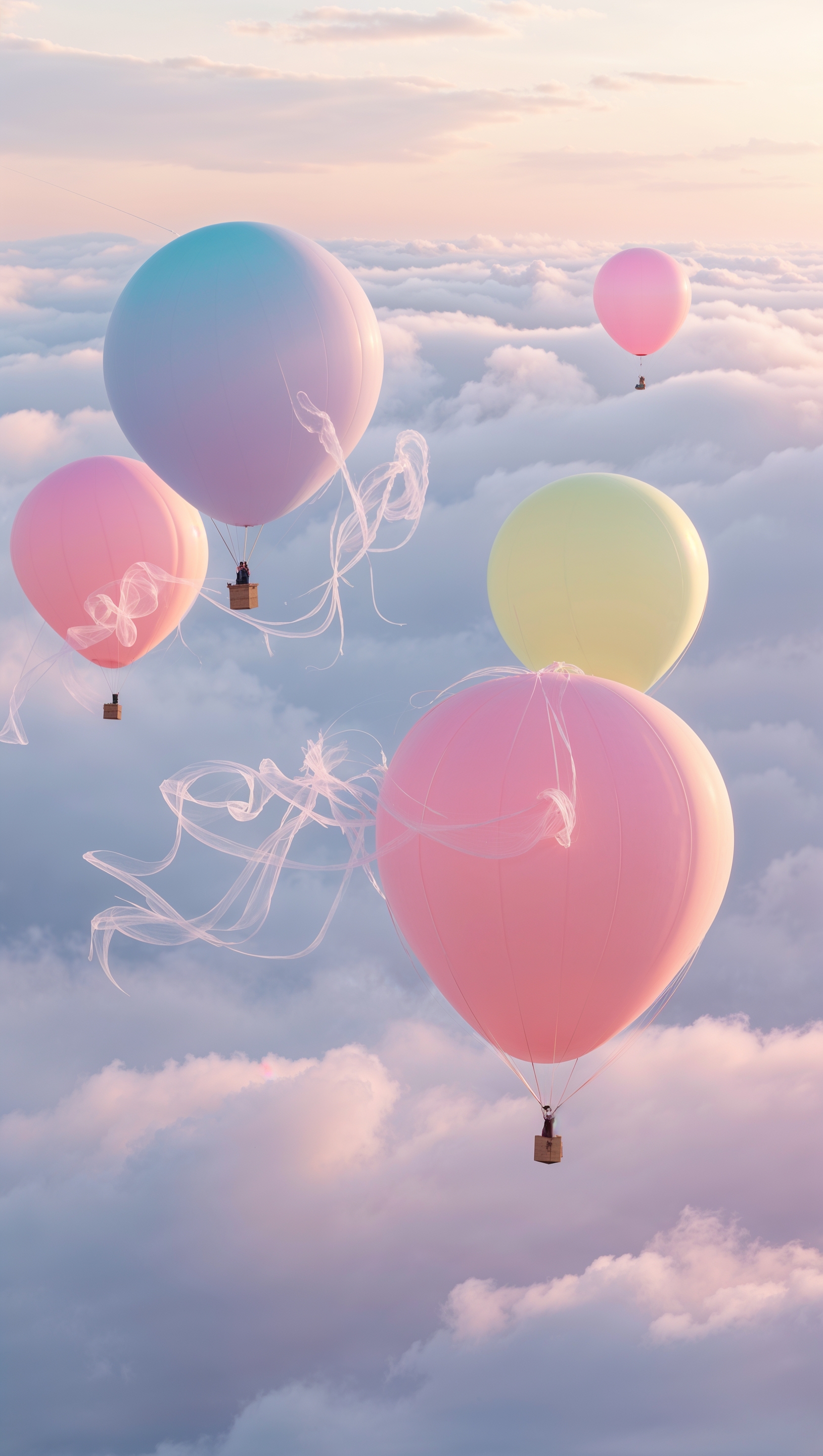 Pastel balloon scene floating in the sky, dreamy and uplifting 1664x2944 Pastel balloon scene floating in the sky, dreamy and uplifting
