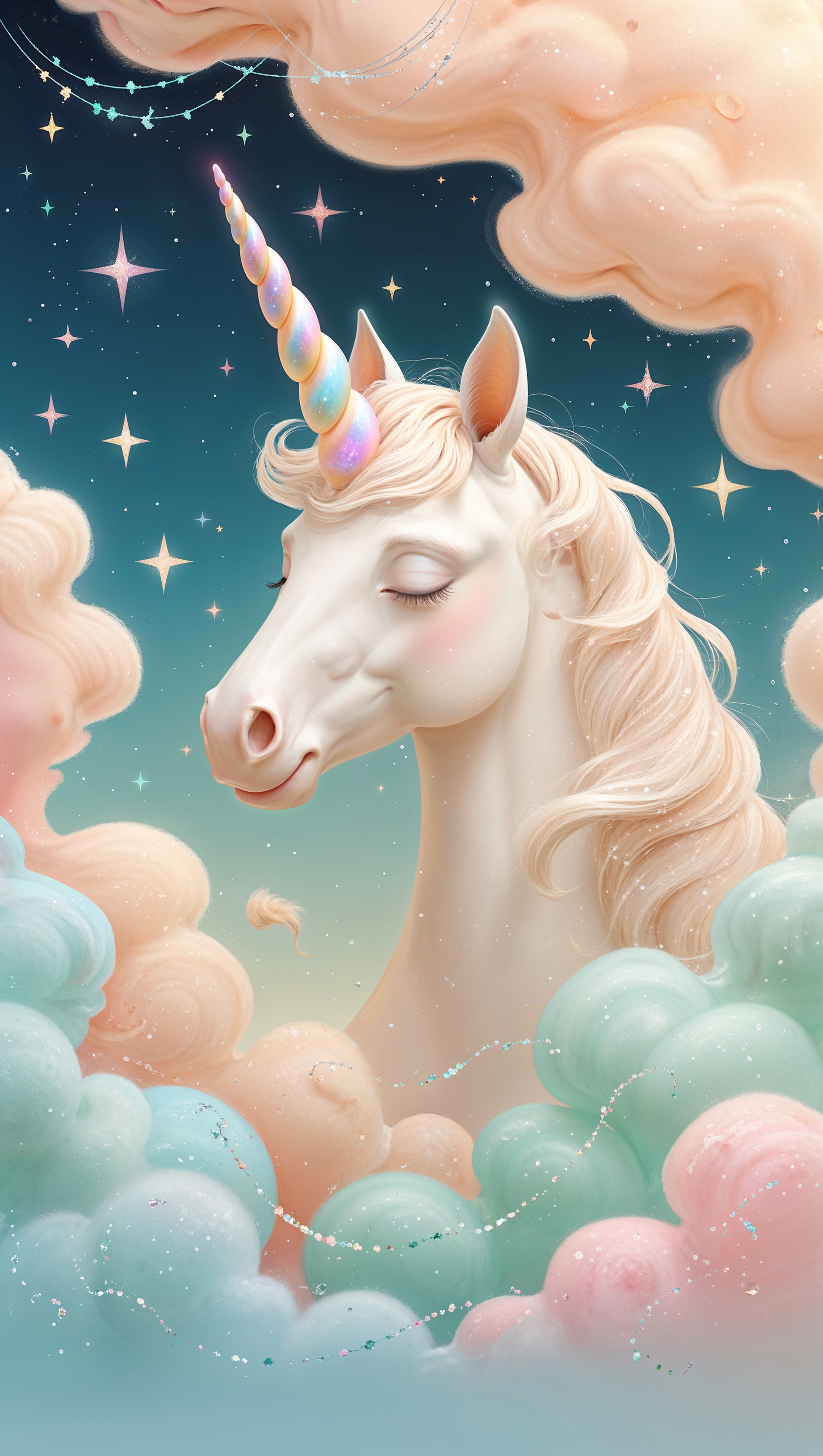 Cute pastel unicorn surrounded by clouds and stars in soft tones 1664x2944 Cute pastel unicorn surrounded by clouds and stars in soft tones