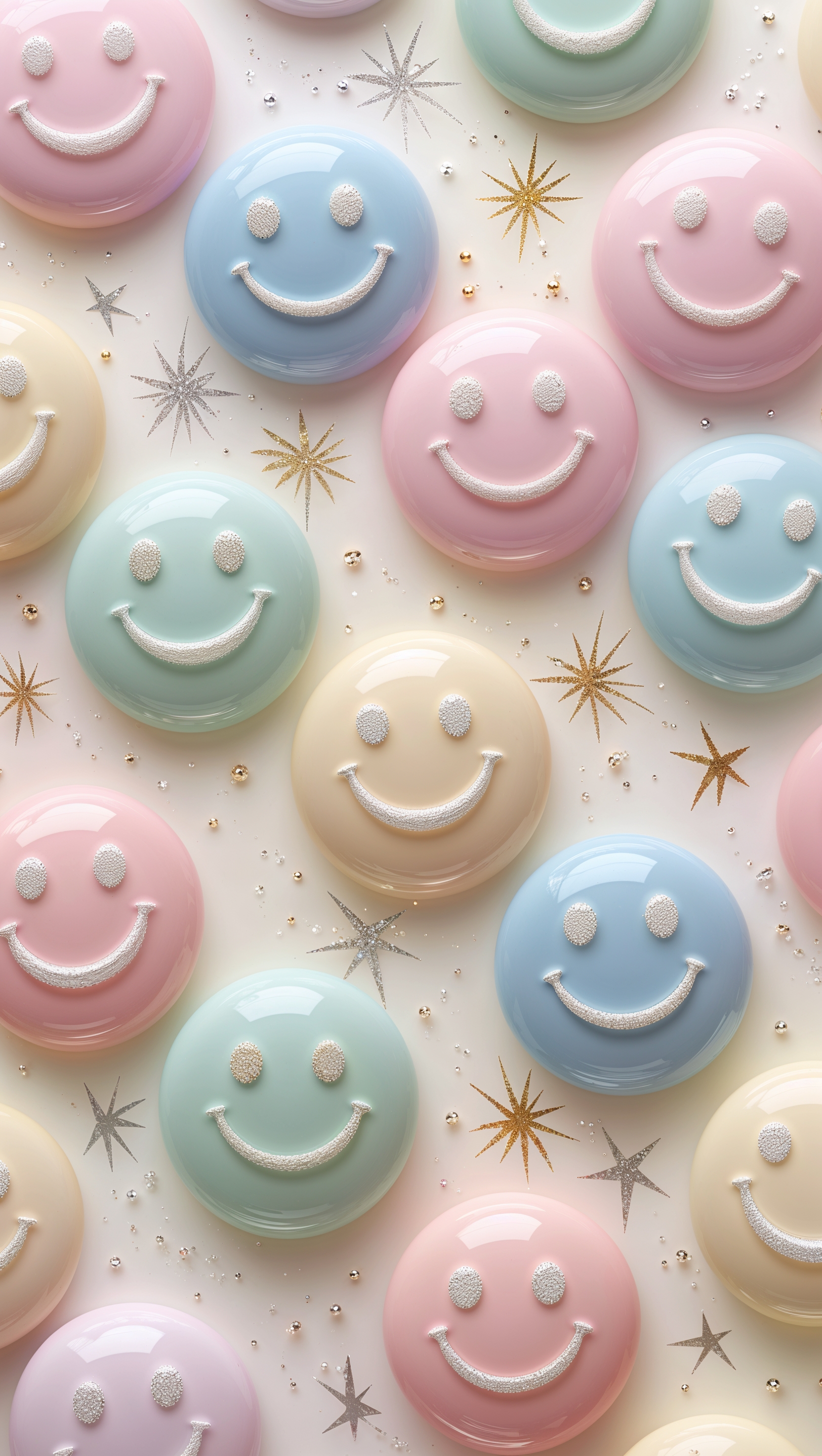Vertical iPhone wallpaper with pastel smiley faces and sparkles, cute and playful 1664x2944 Vertical iPhone wallpaper with pastel smiley faces and sparkles, cute and playful