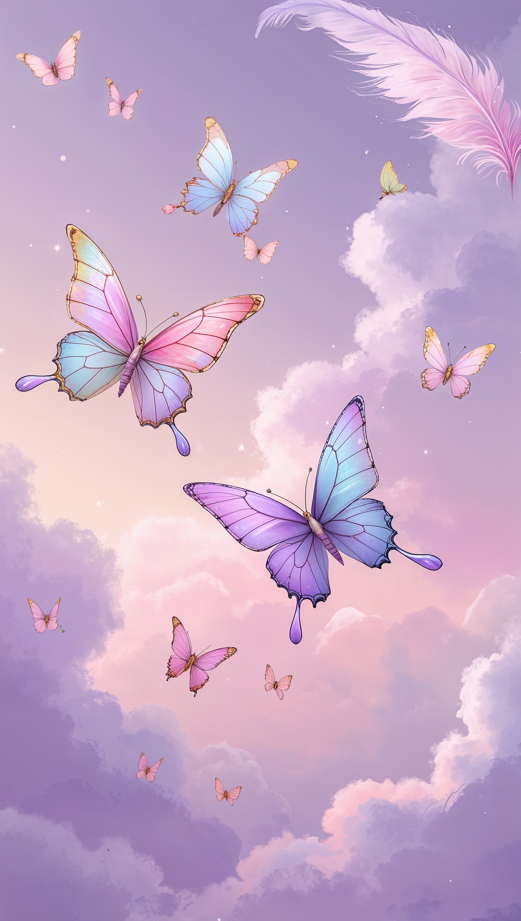 Stylized pastel butterflies floating across soft pink and lavender skies 1664x2944 Stylized pastel butterflies floating across soft pink and lavender skies