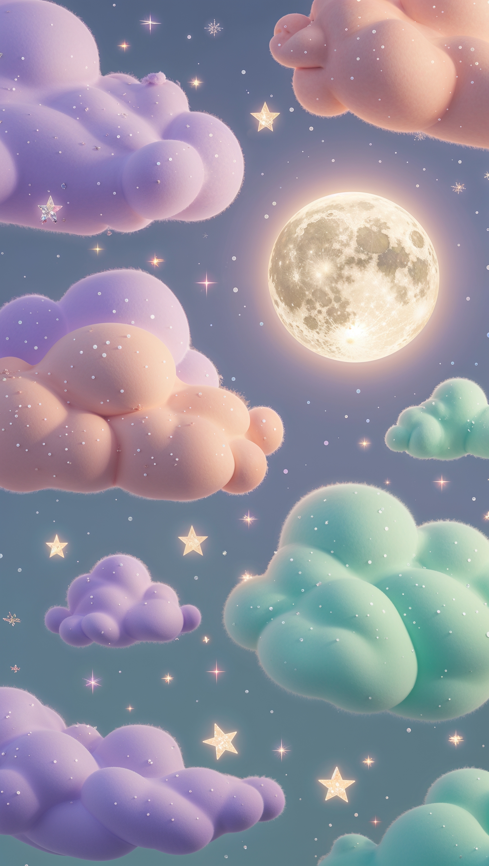 Pastel clouds with stars and glowing moon, celestial dreamy vibe 1664x2944 Pastel clouds with stars and glowing moon, celestial dreamy vibe