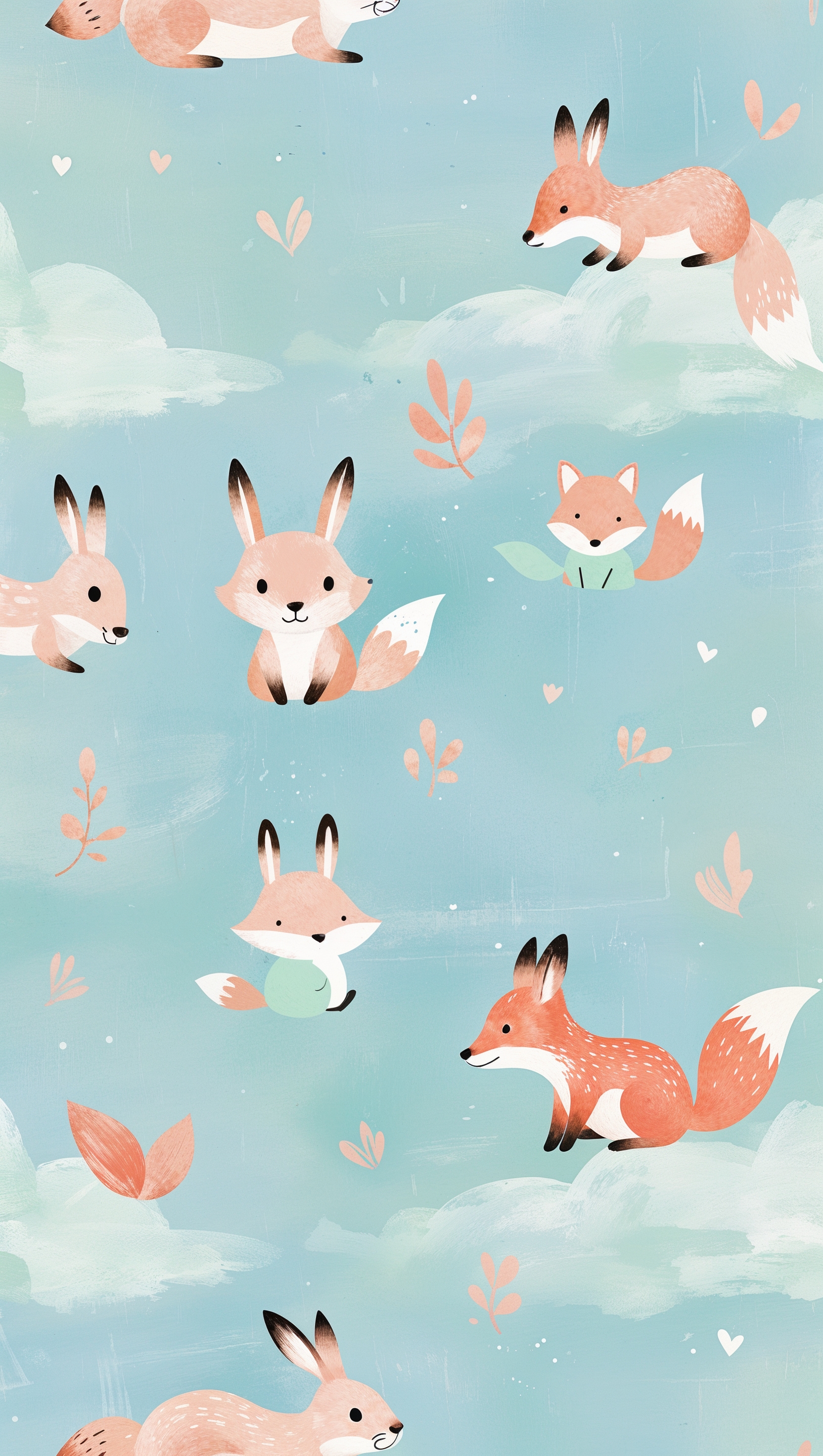 Cute animal doodles in pastel tones on a soft blue background 1664x2944 Cute animal doodles in pastel tones on a soft blue background