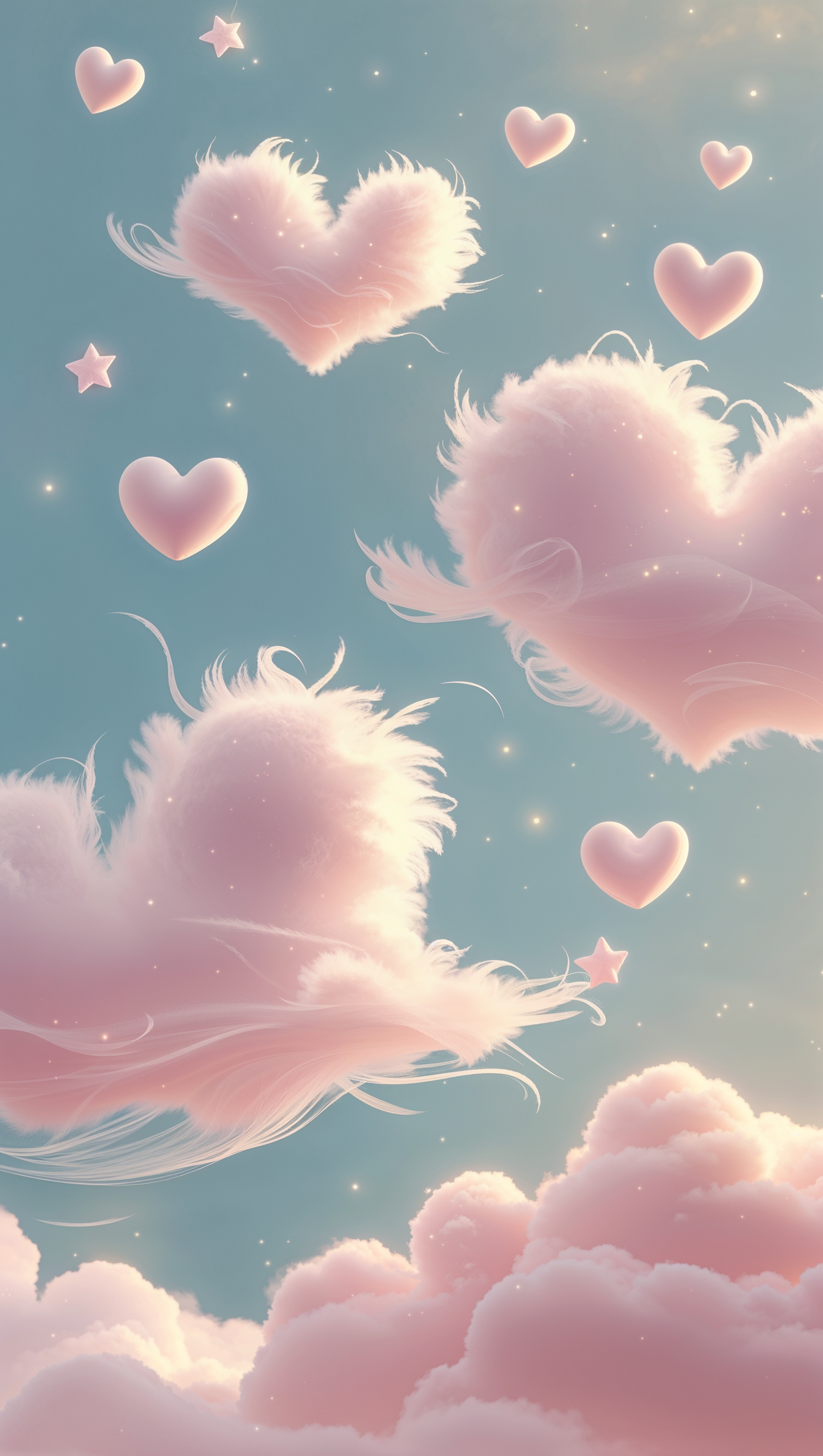 Pastel clouds forming hearts and stars, playful and gentle mood 1664x2944 Pastel clouds forming hearts and stars, playful and gentle mood