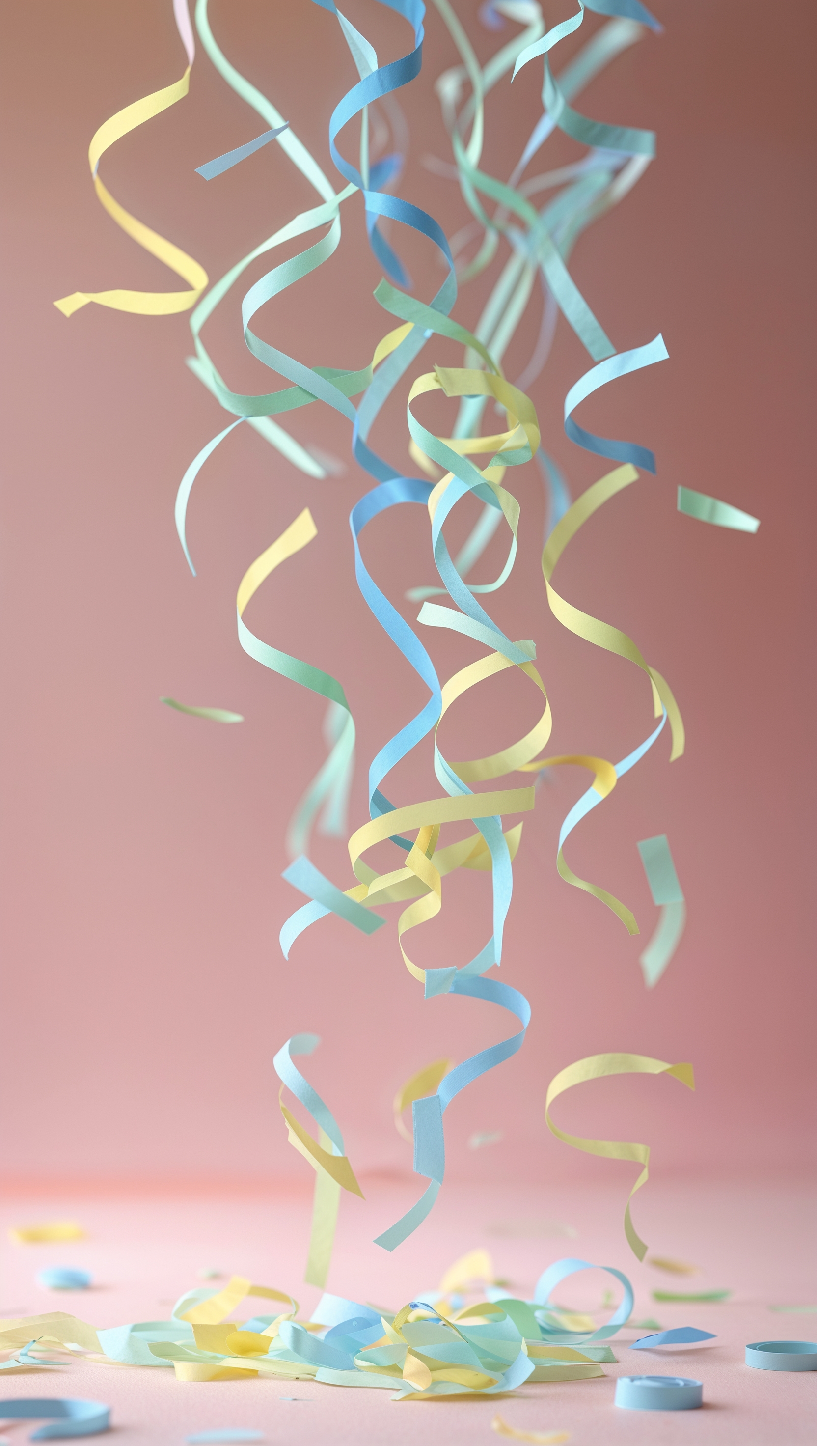 1664x2944 Bright pastel confetti falling on soft pink background