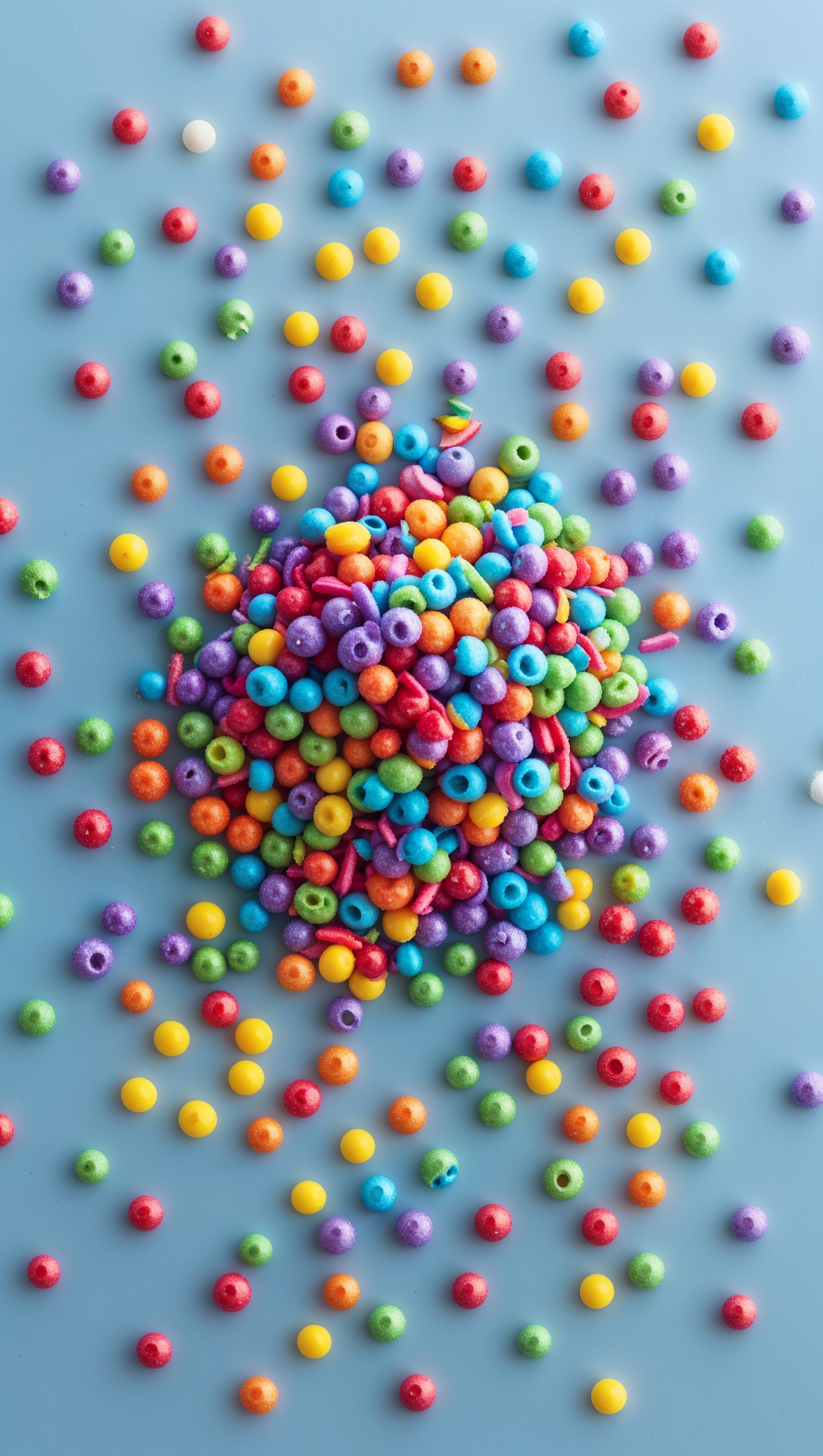 1664x2944 Rainbow sprinkles scattered over pastel blue background