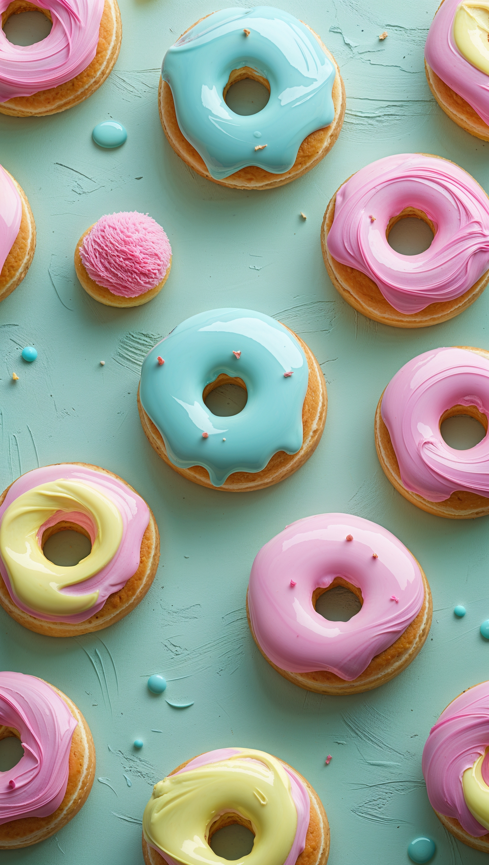 1664x2944 Cute donut pattern with colorful icing on mint green background