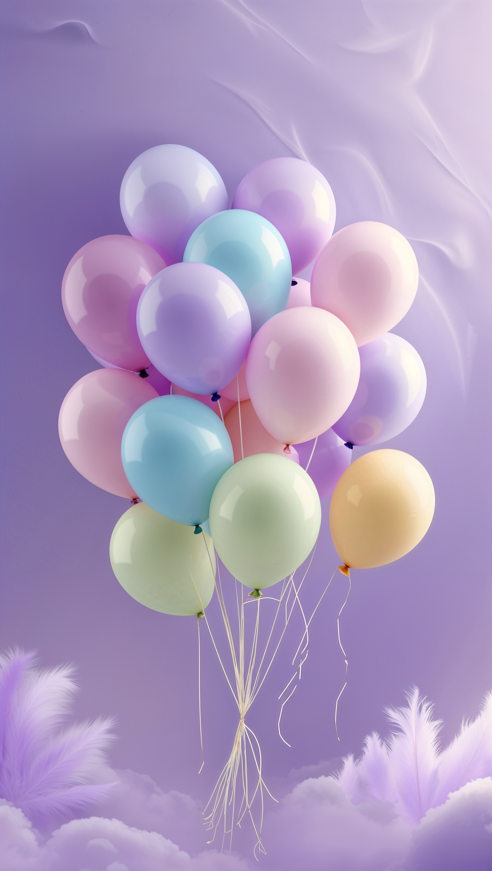 1664x2944 Playful balloons tied together floating over soft lavender backdrop