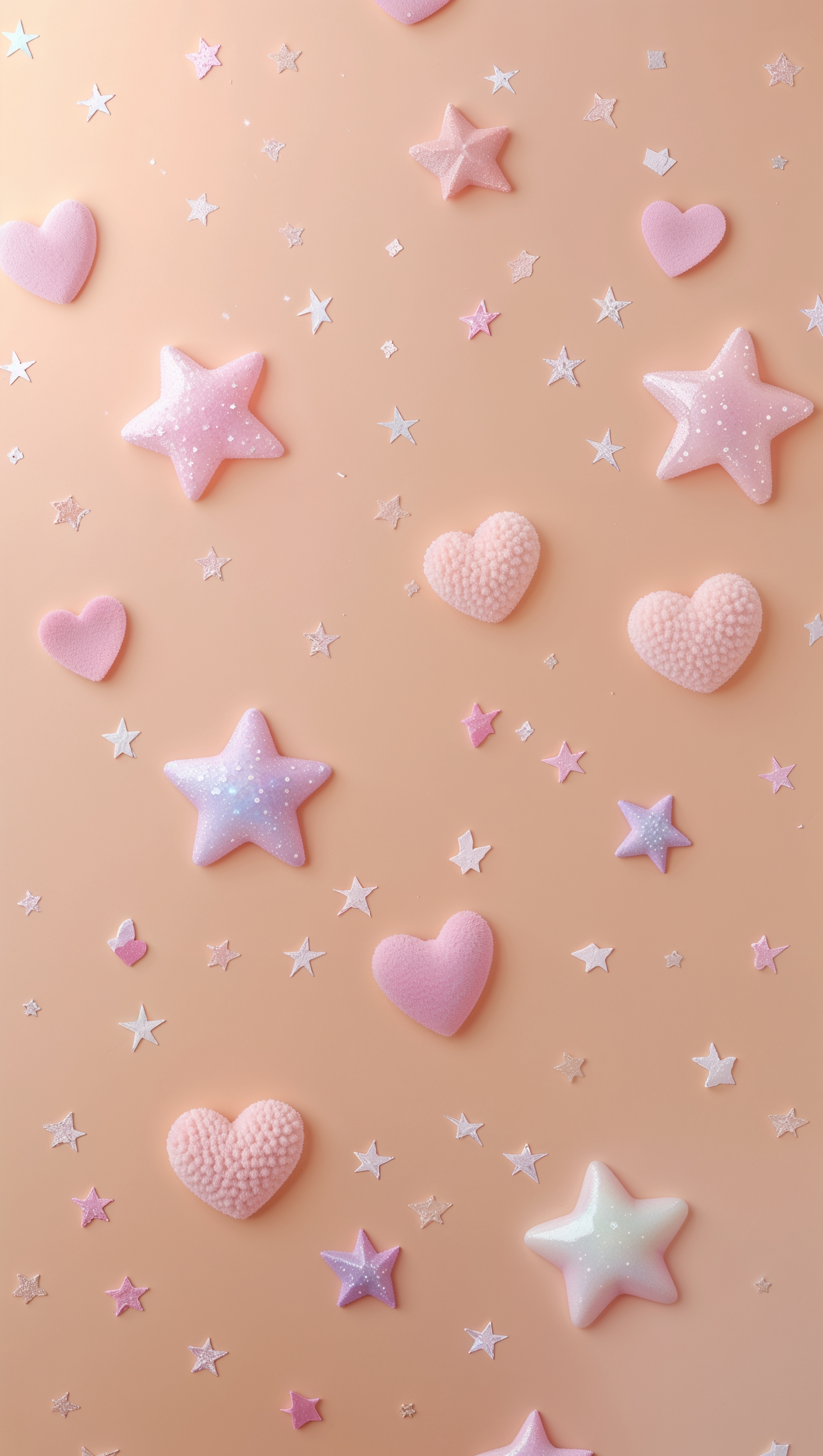 1664x2944 Tiny pastel stars and hearts mixed on pale peach background