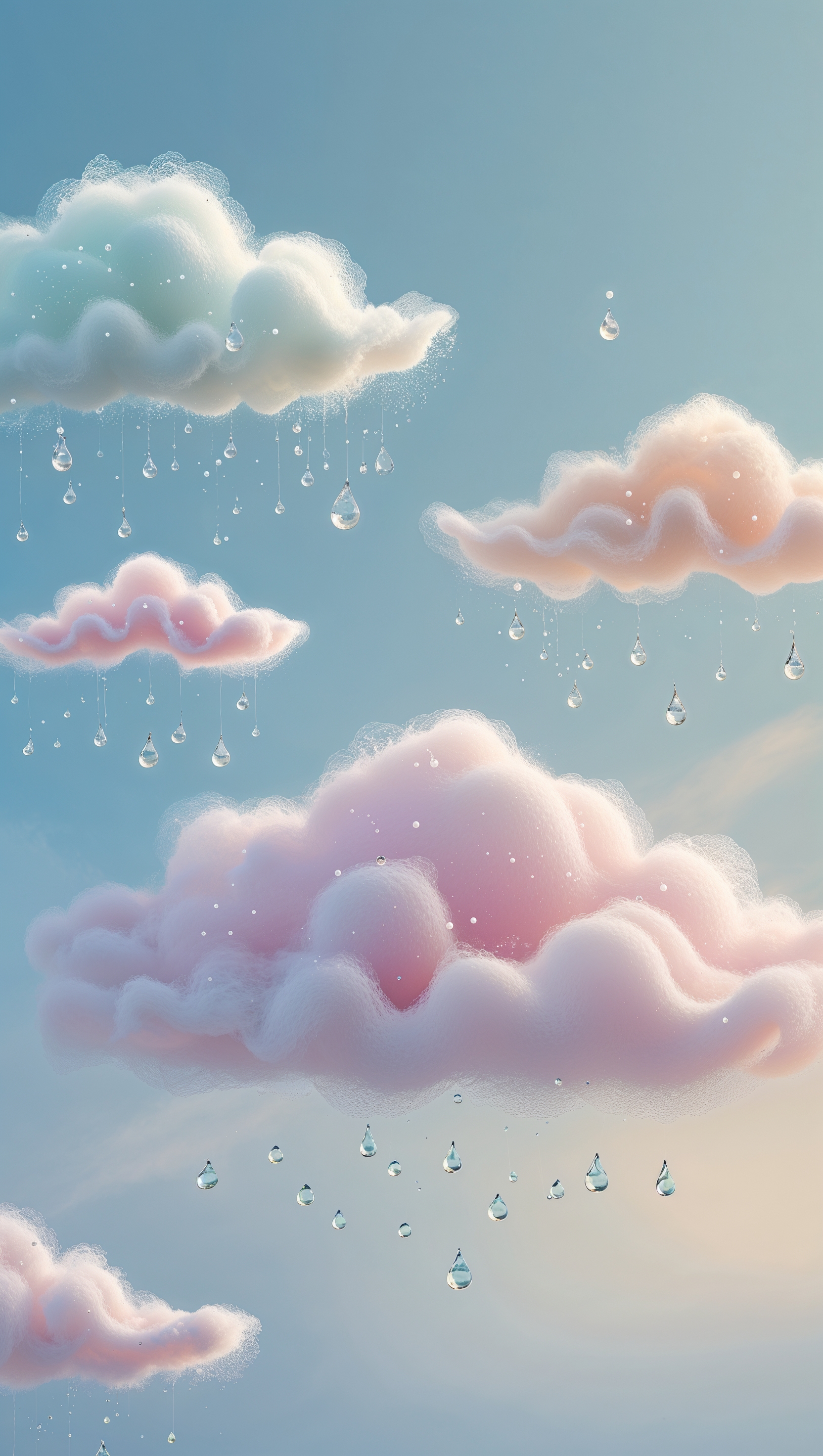 1664x2944 Soft pastel clouds with gentle rain drops on baby blue background