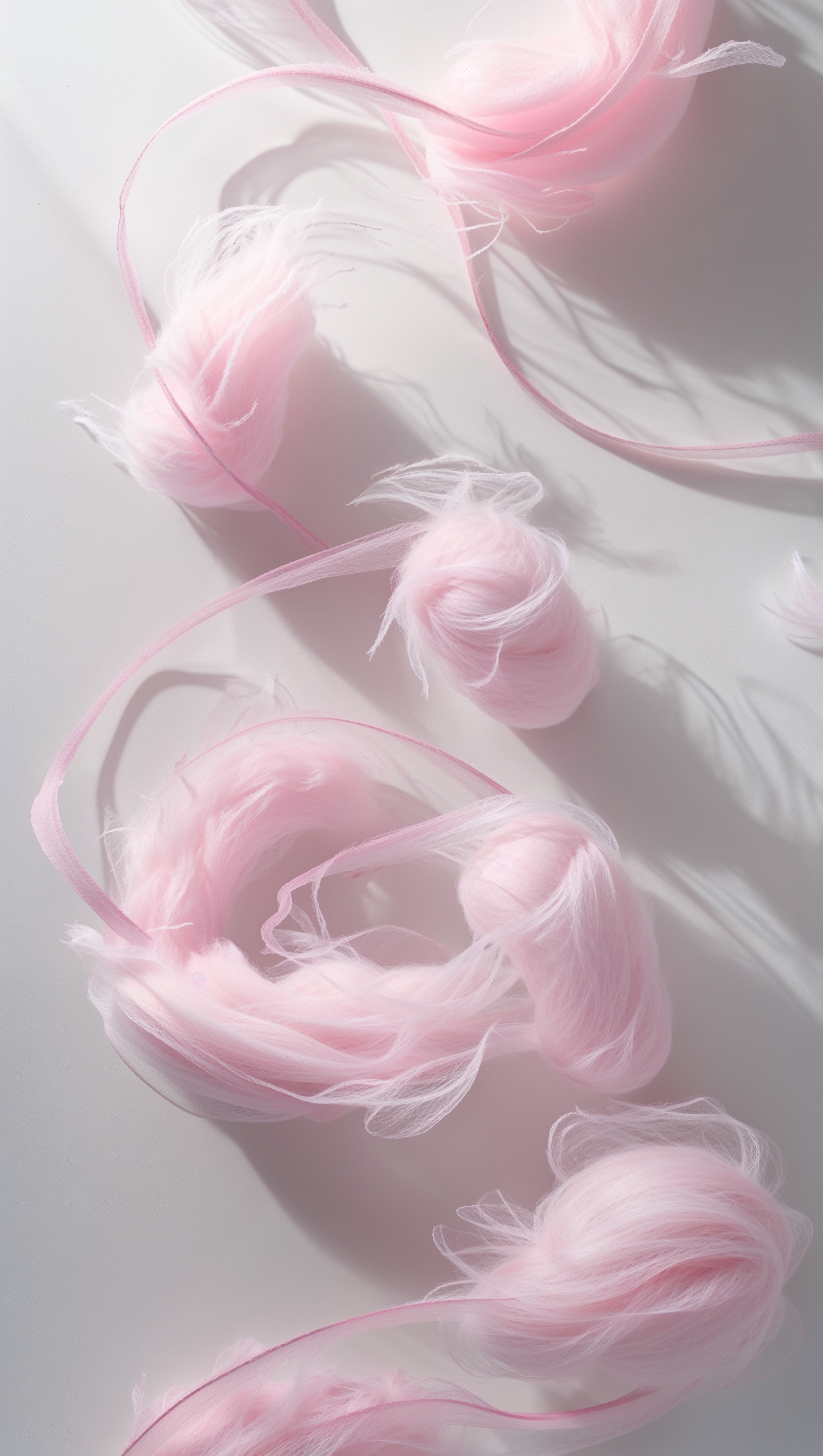 1664x2944 Pink cotton candy swirls on white background with soft shadows