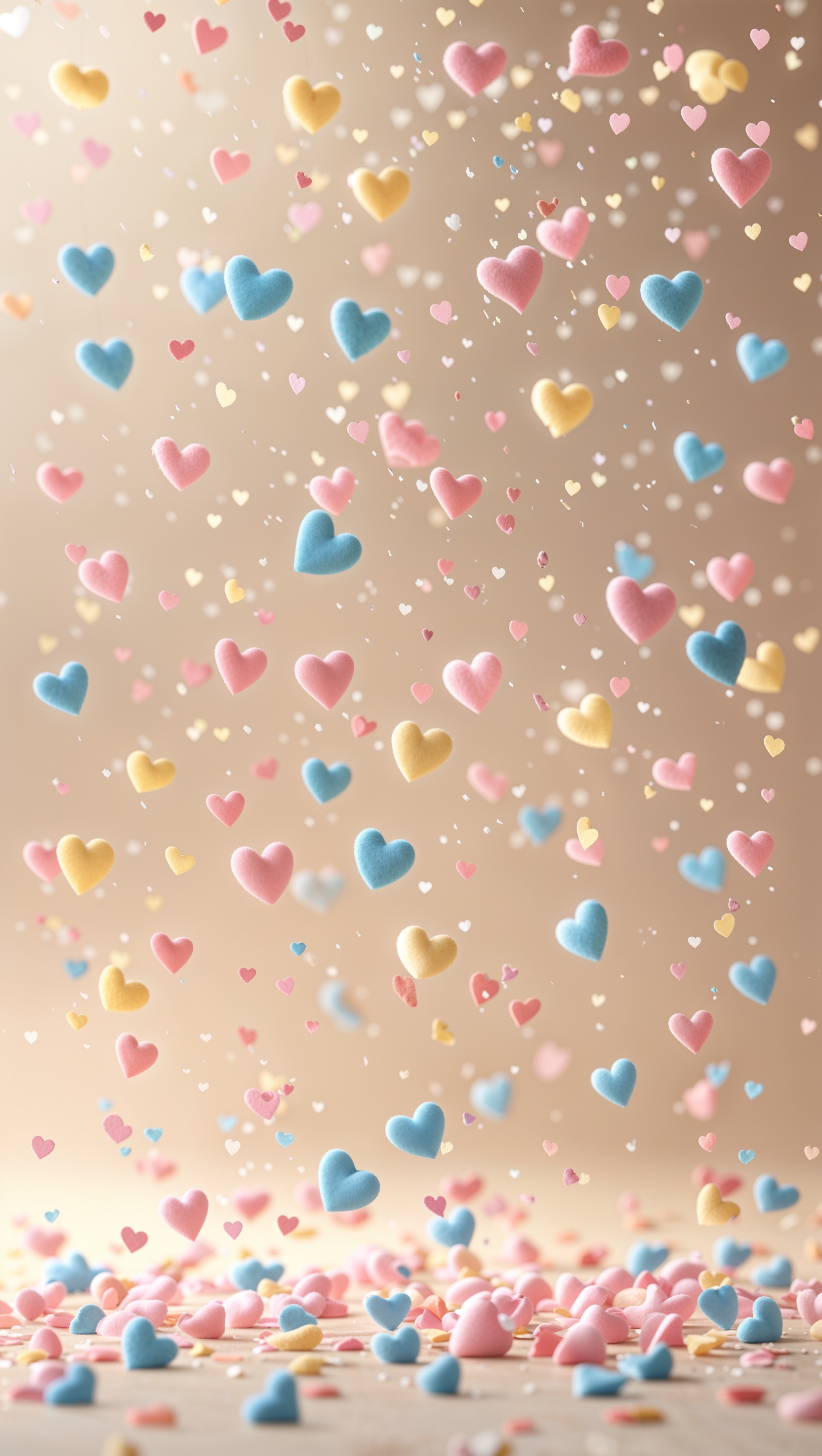 1664x2944 Tiny pastel hearts raining down on light beige background