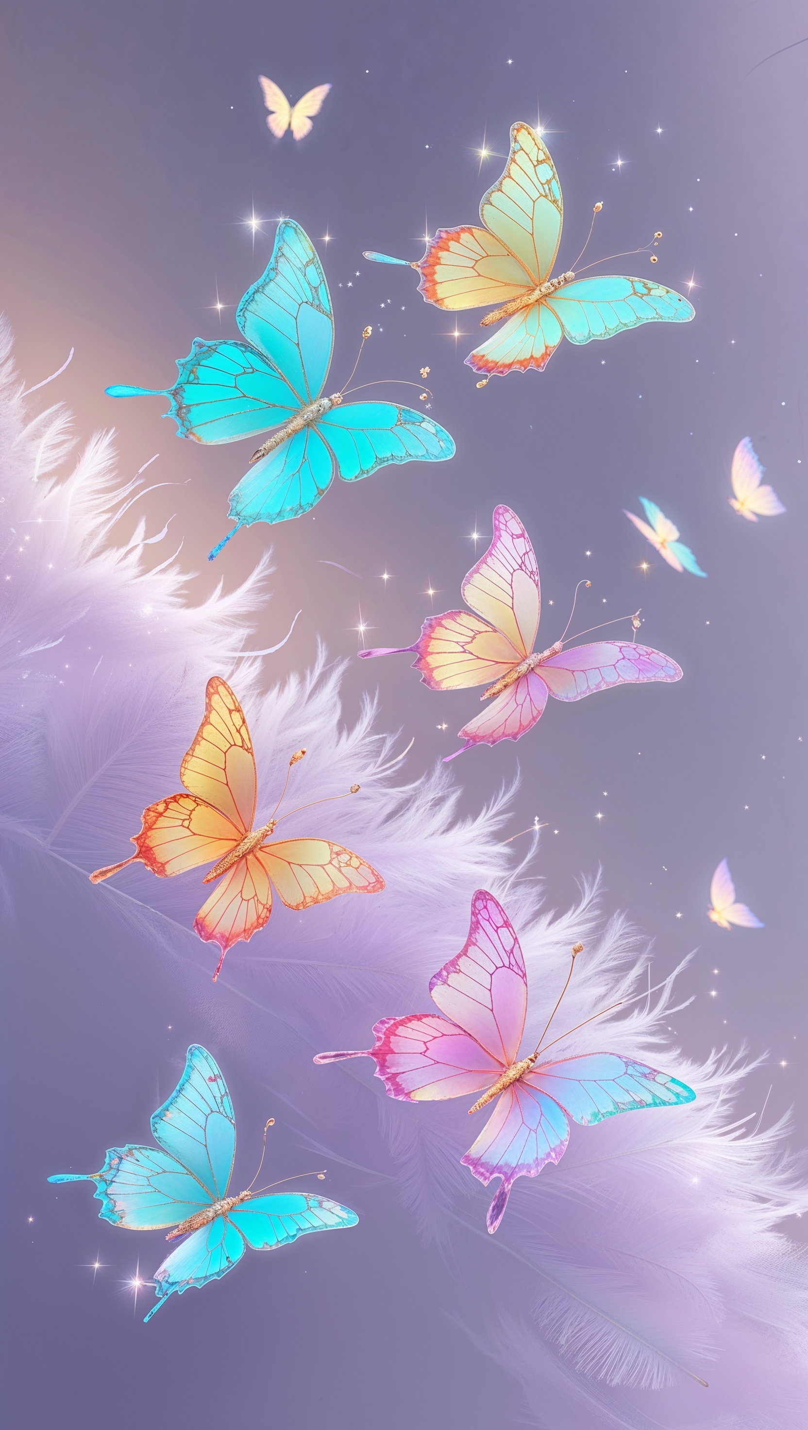 1664x2944 Small colorful butterflies fluttering on pale lavender background