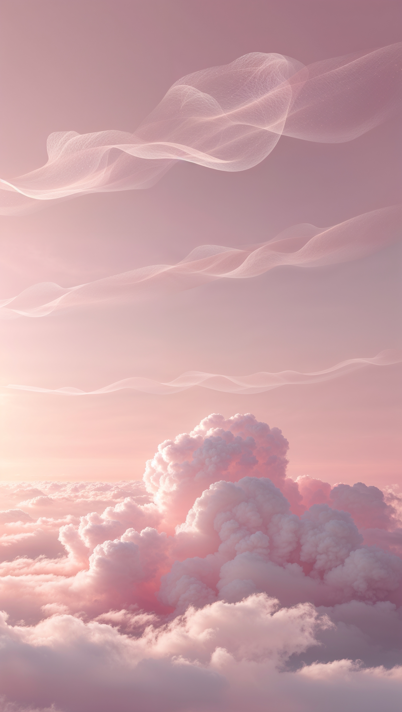 1664x2944 Fluffy white clouds drifting on pastel pink sky