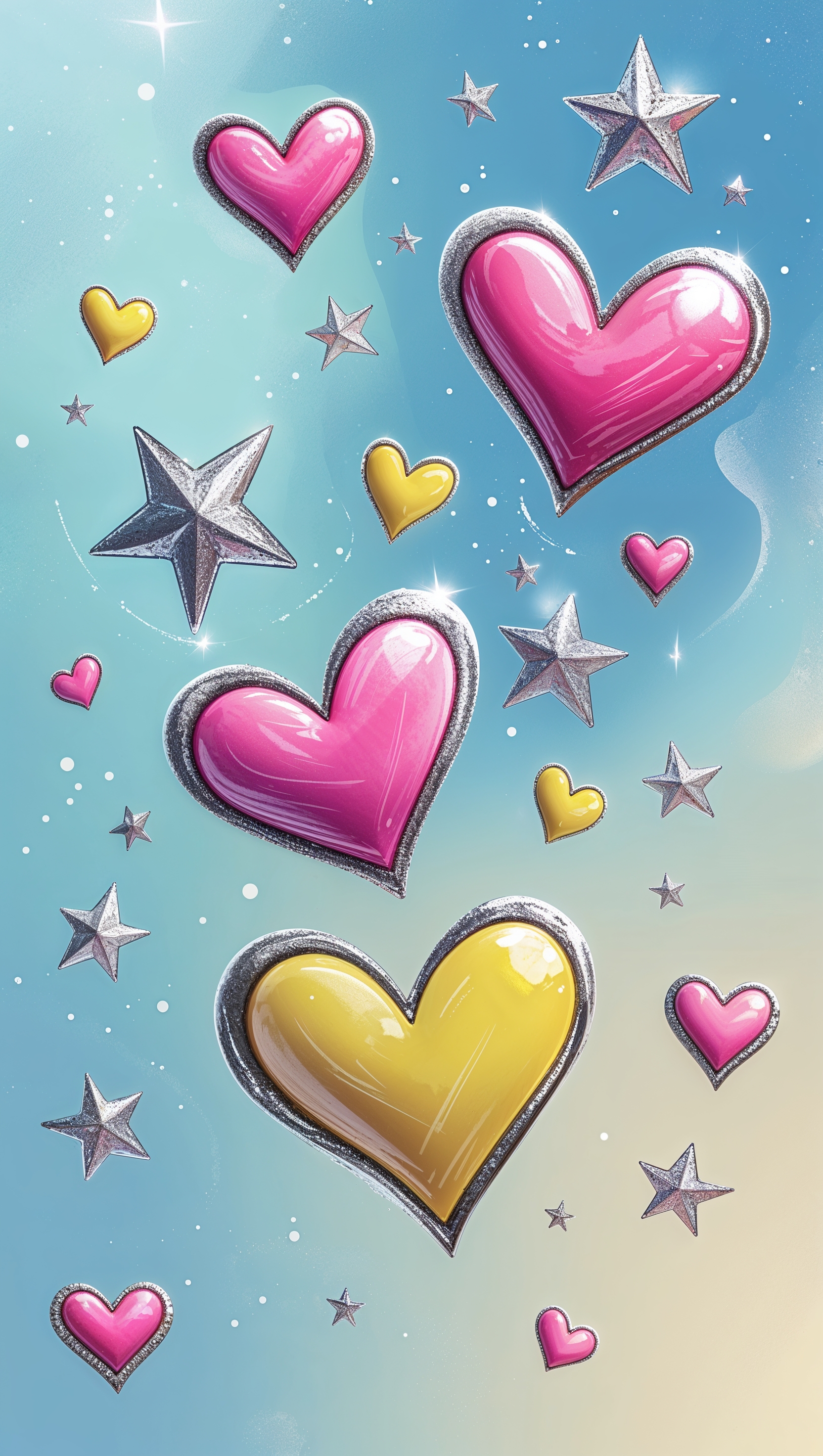 1664x2944 Doodle hearts and stars floating over soft blue background