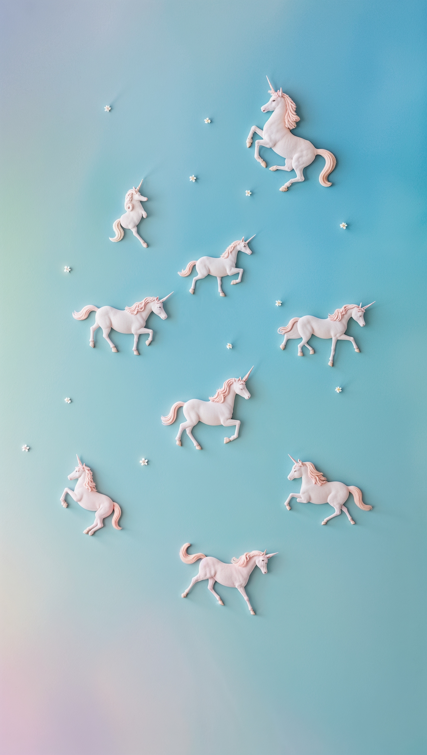 1664x2944 Tiny unicorn silhouettes scattered on pastel blue background
