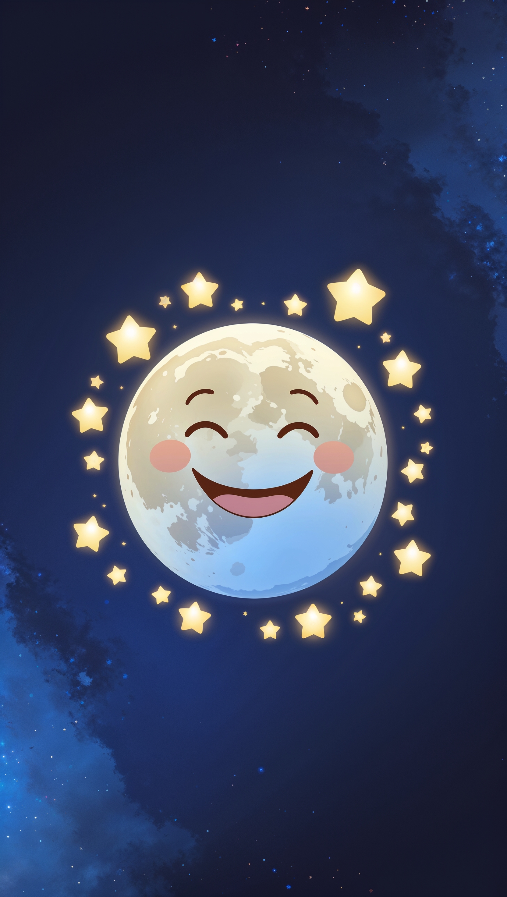 1664x2944 Cute smiling moon surrounded by glowing stars on navy background