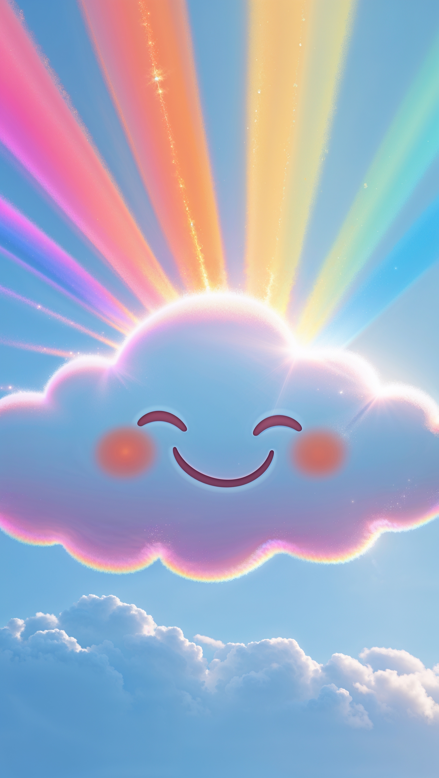 1664x2944 Smiling cloud with rainbow beams on baby blue sky