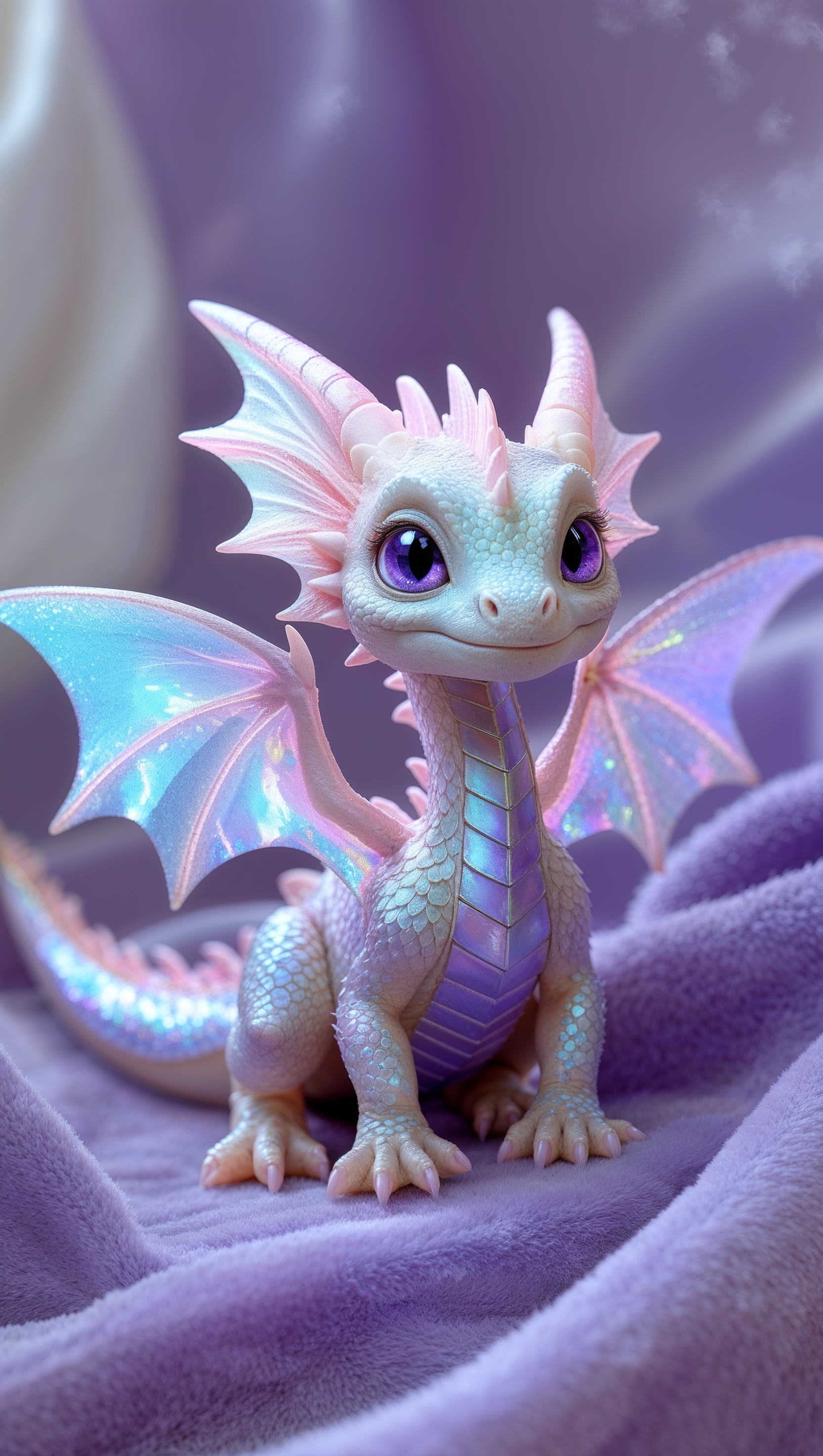 1664x2944 Cute little dragon with sparkly wings on soft lavender backdrop