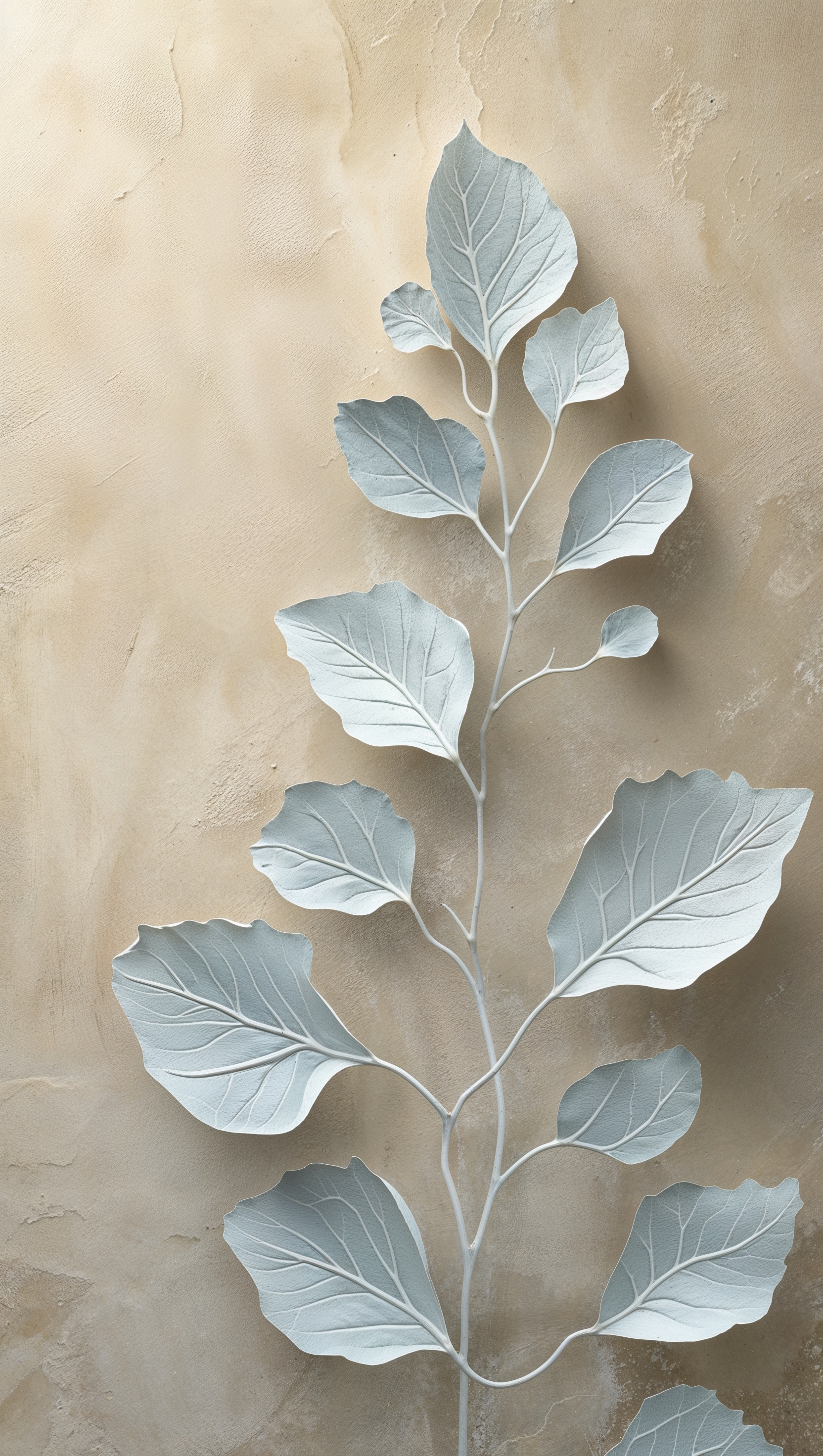 Simple leaf vein pattern in light gray on cream background 1664x2944 Simple leaf vein pattern in light gray on cream background
