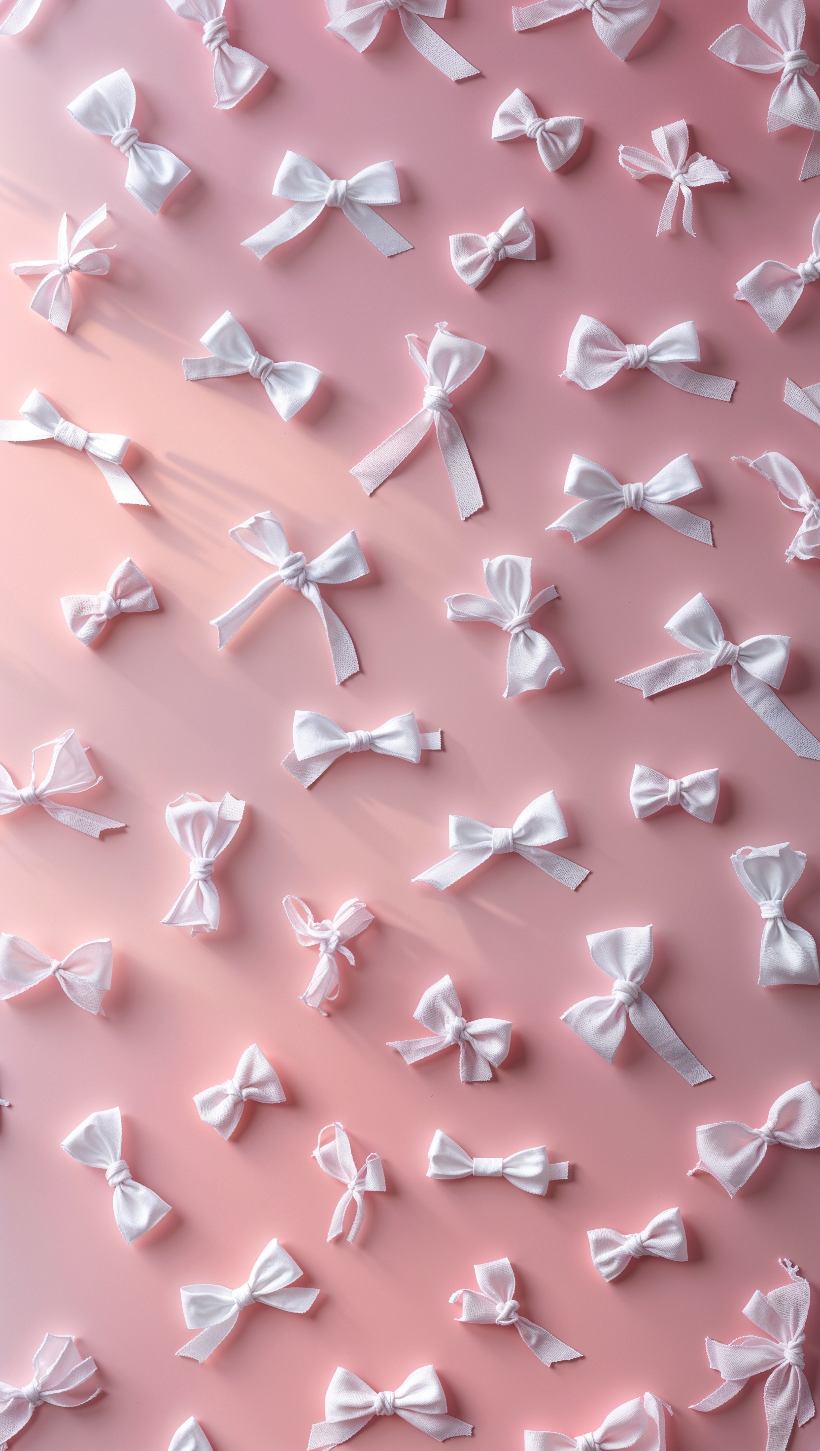 1664x2944 Minimalist pink background with tiny white bows scattered gently
