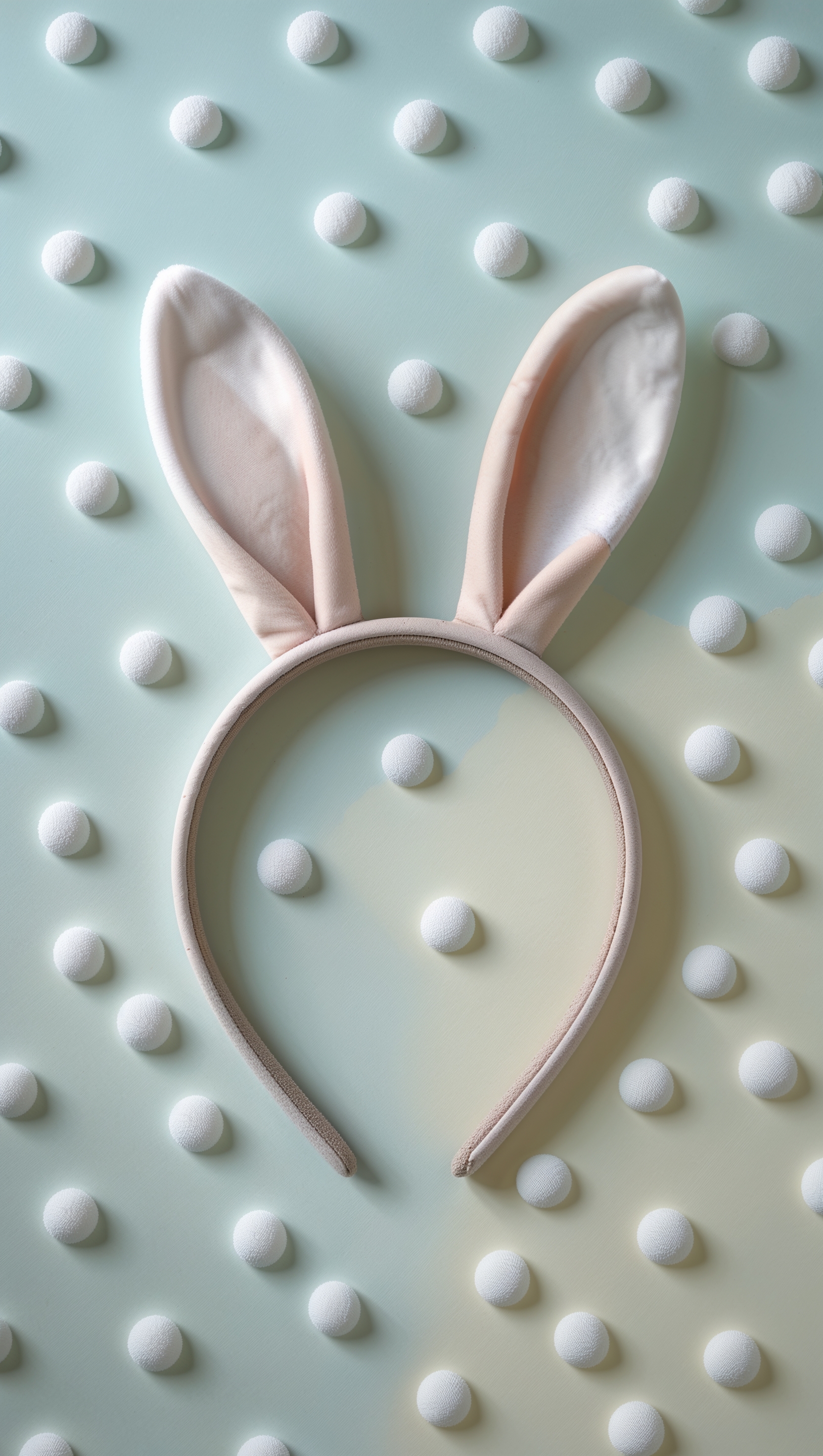 1664x2944 Cute bunny ears headband on pastel blue background with polka dots