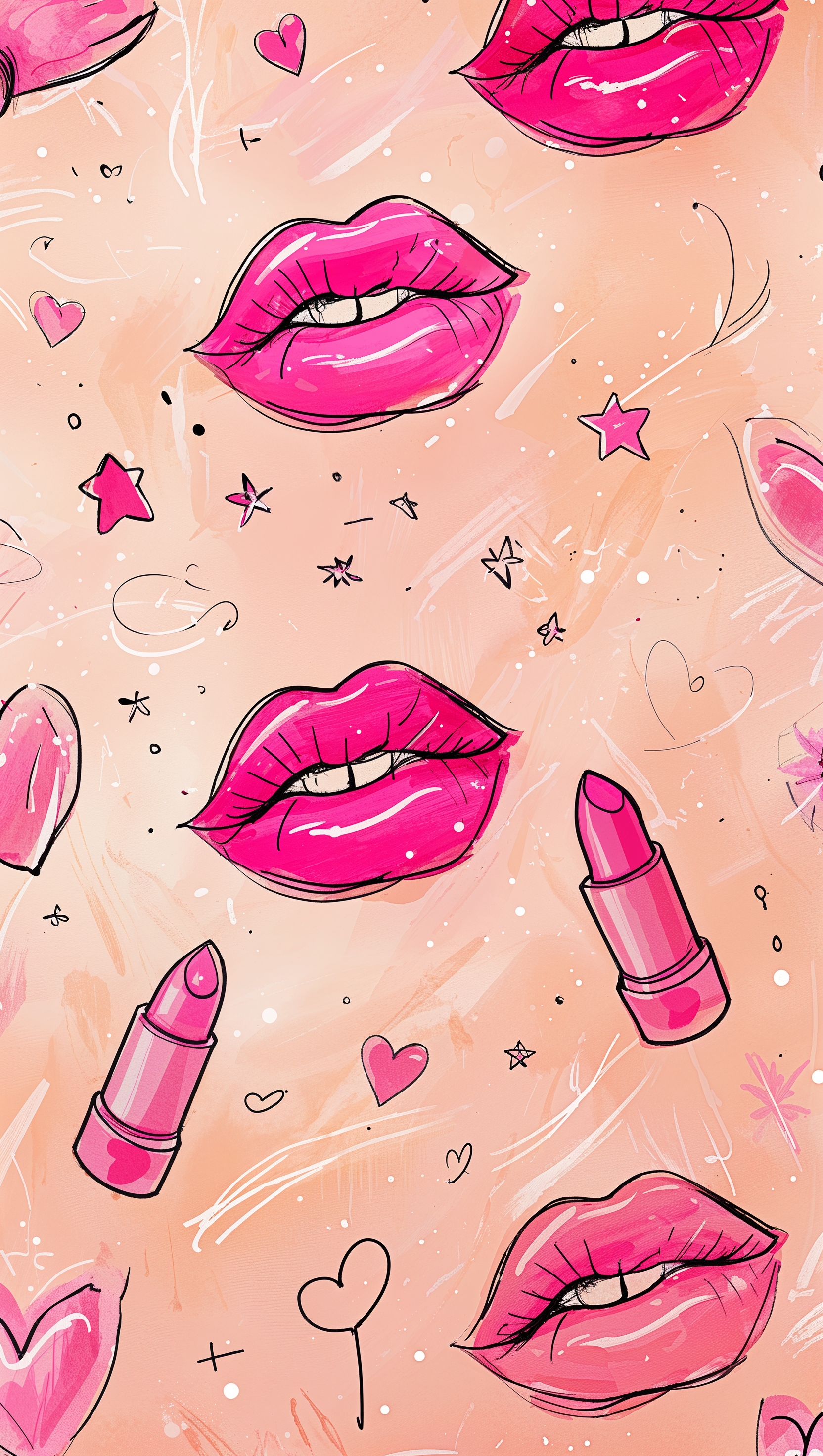 1664x2944 Girly doodles of lipstick, hearts, and stars on soft peach background