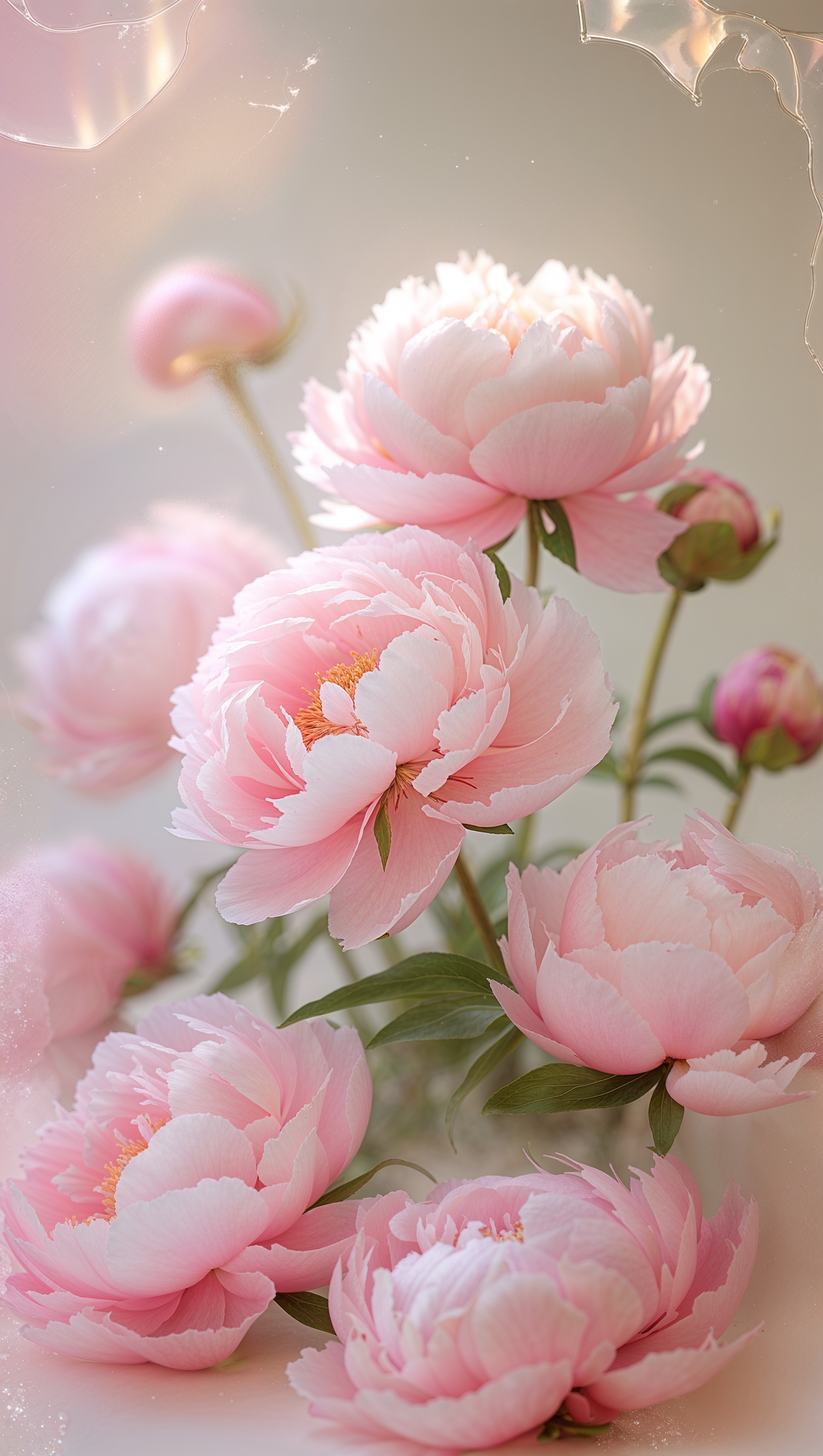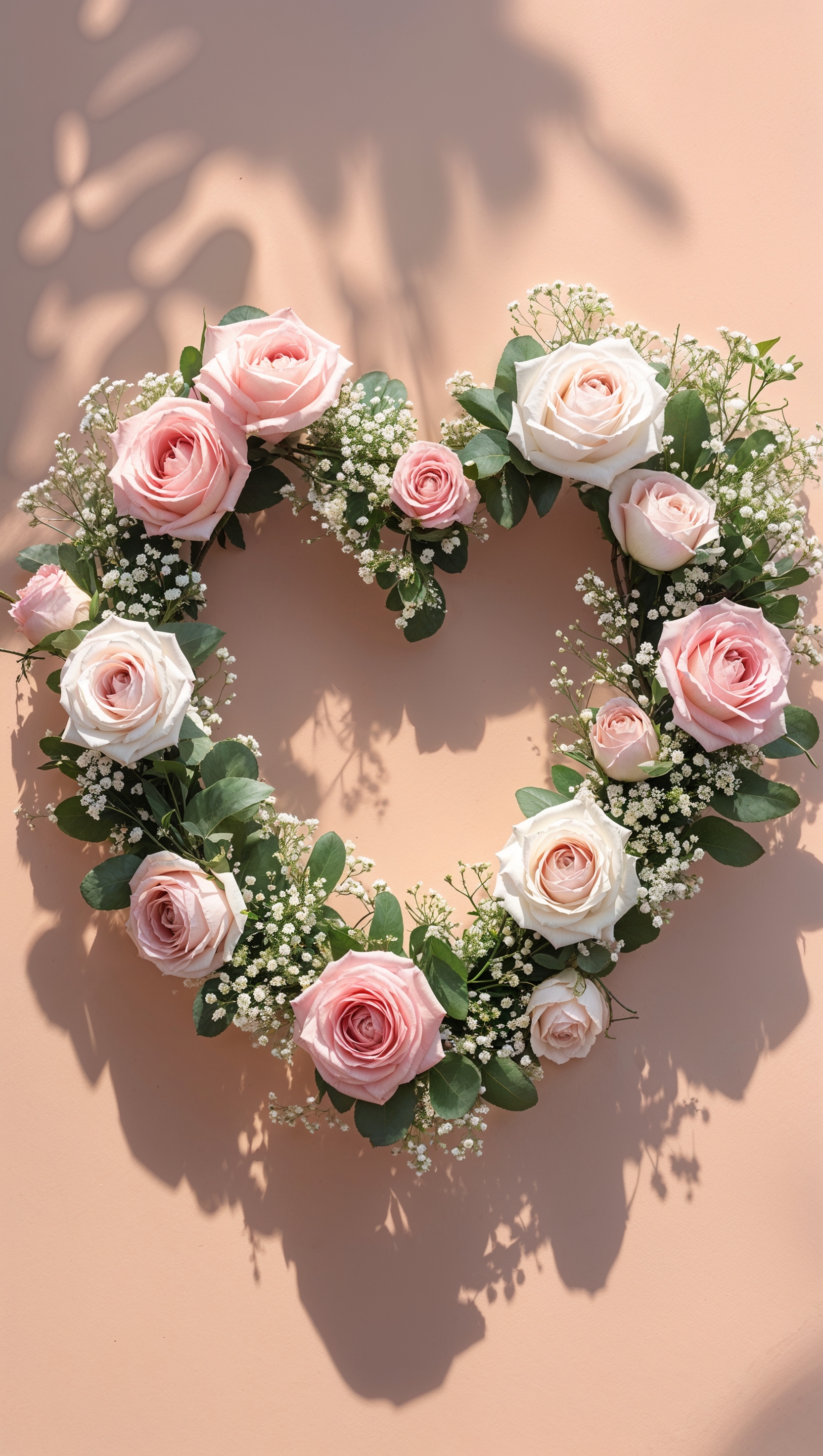 1664x2944 Romantic heart-shaped flower arrangement on light peach background