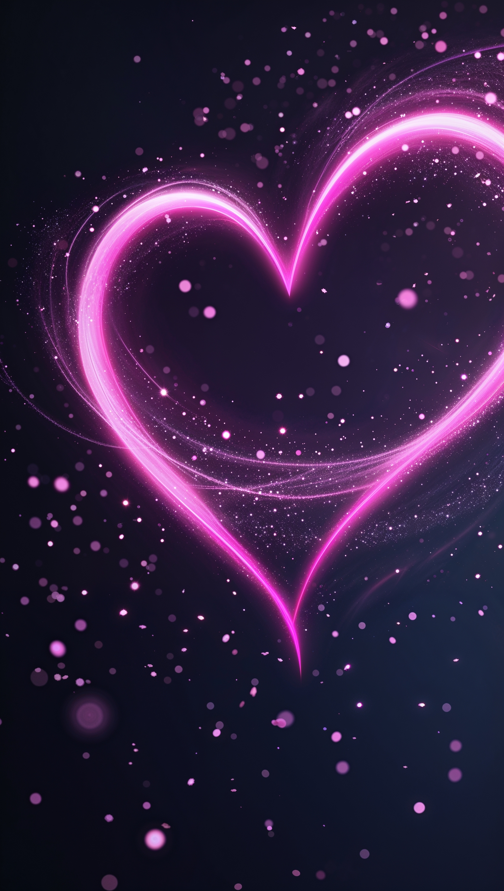 1664x2944 Neon pink heart glowing on black background with sparkles