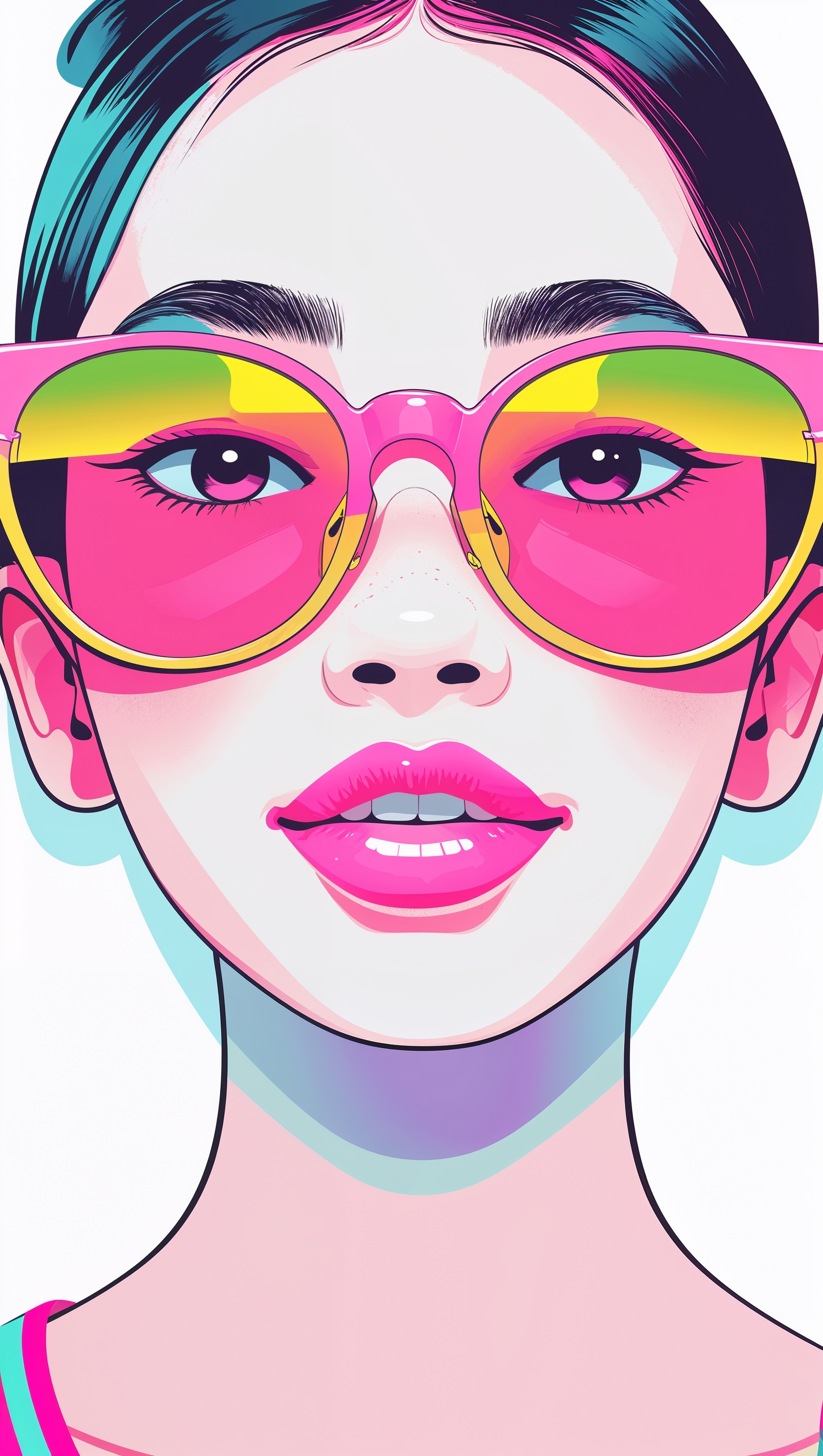1664x2944 Flat digital illustration of girl with oversized sunglasses and pink lips