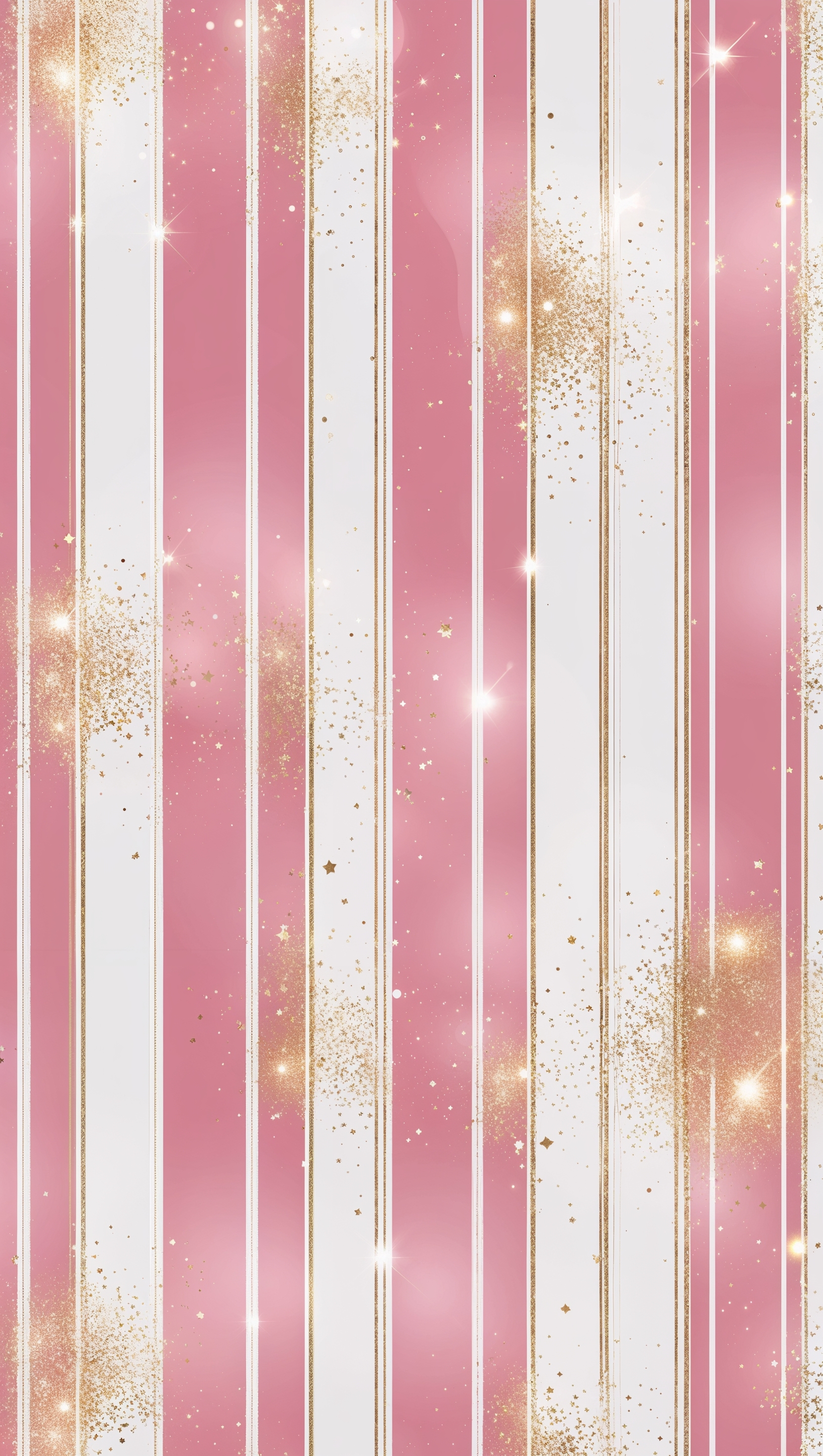 1664x2944 Vertical stripes in pink and white with golden sparkle highlights