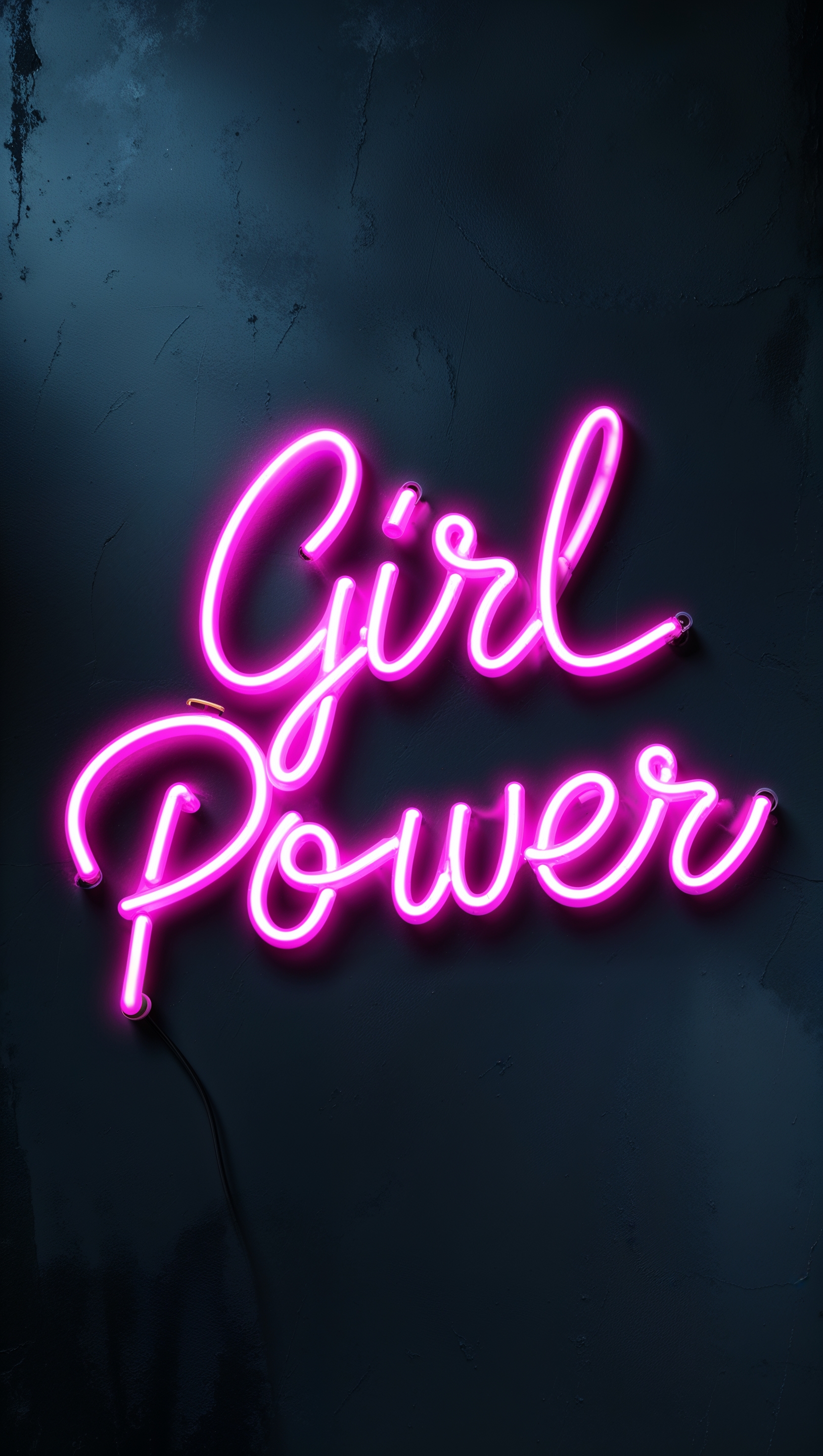 1664x2944 “Girl power” handwritten neon sign with pink glow on dark background