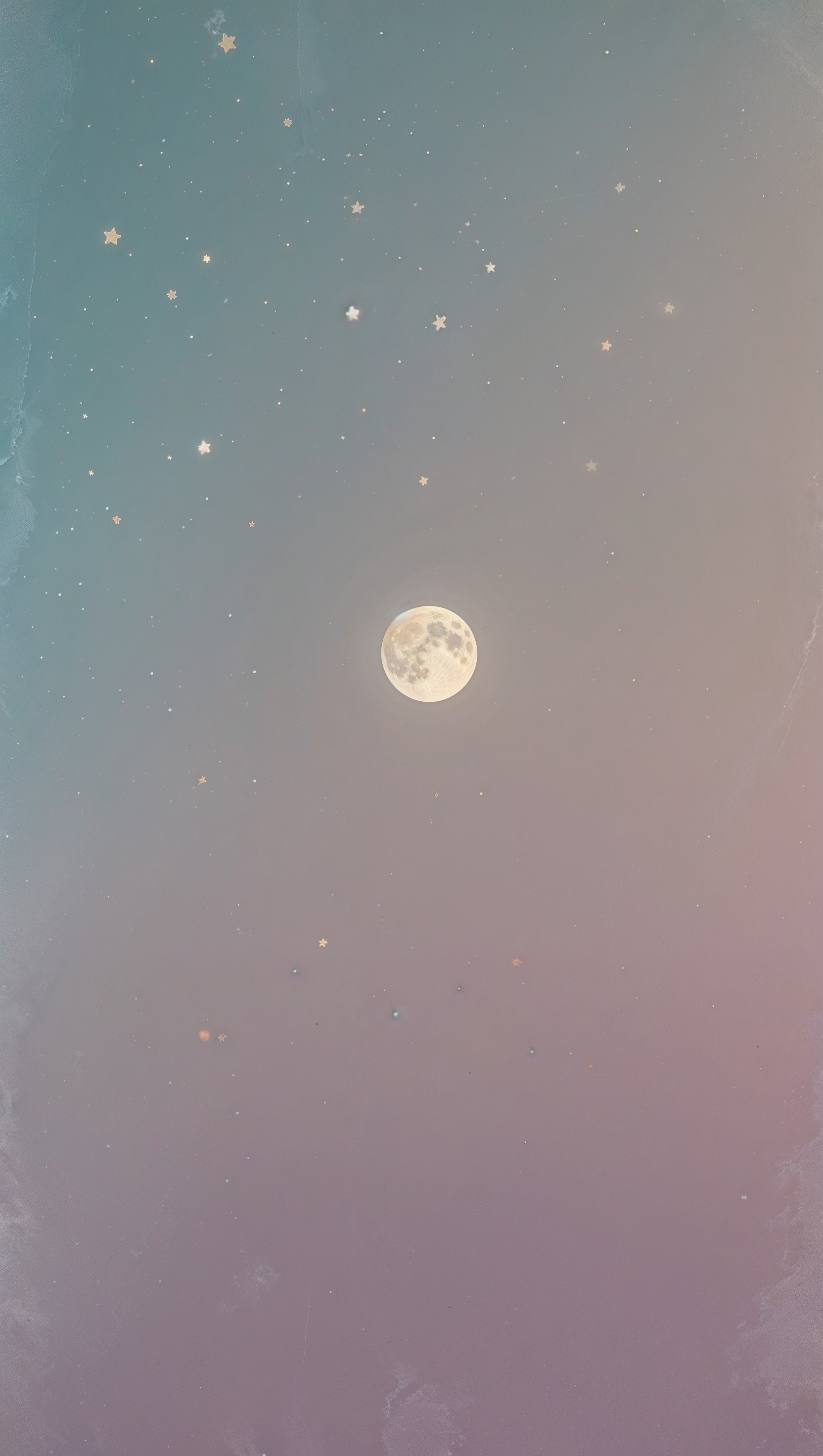 1664x2944 Minimal moon and stars in pastel sky with soft grain texture