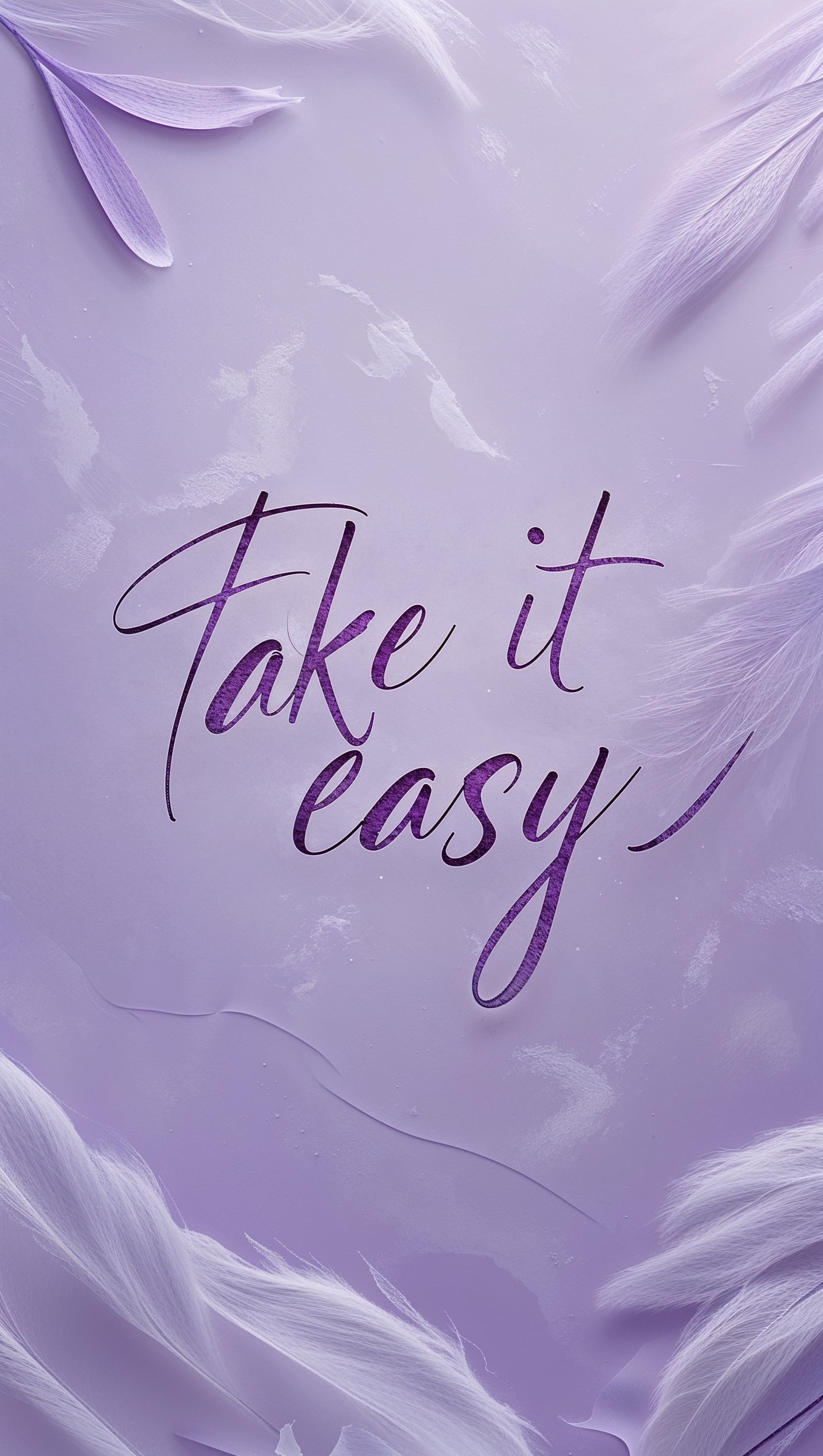 1664x2944 “Take it easy” handwritten quote on pale lilac background