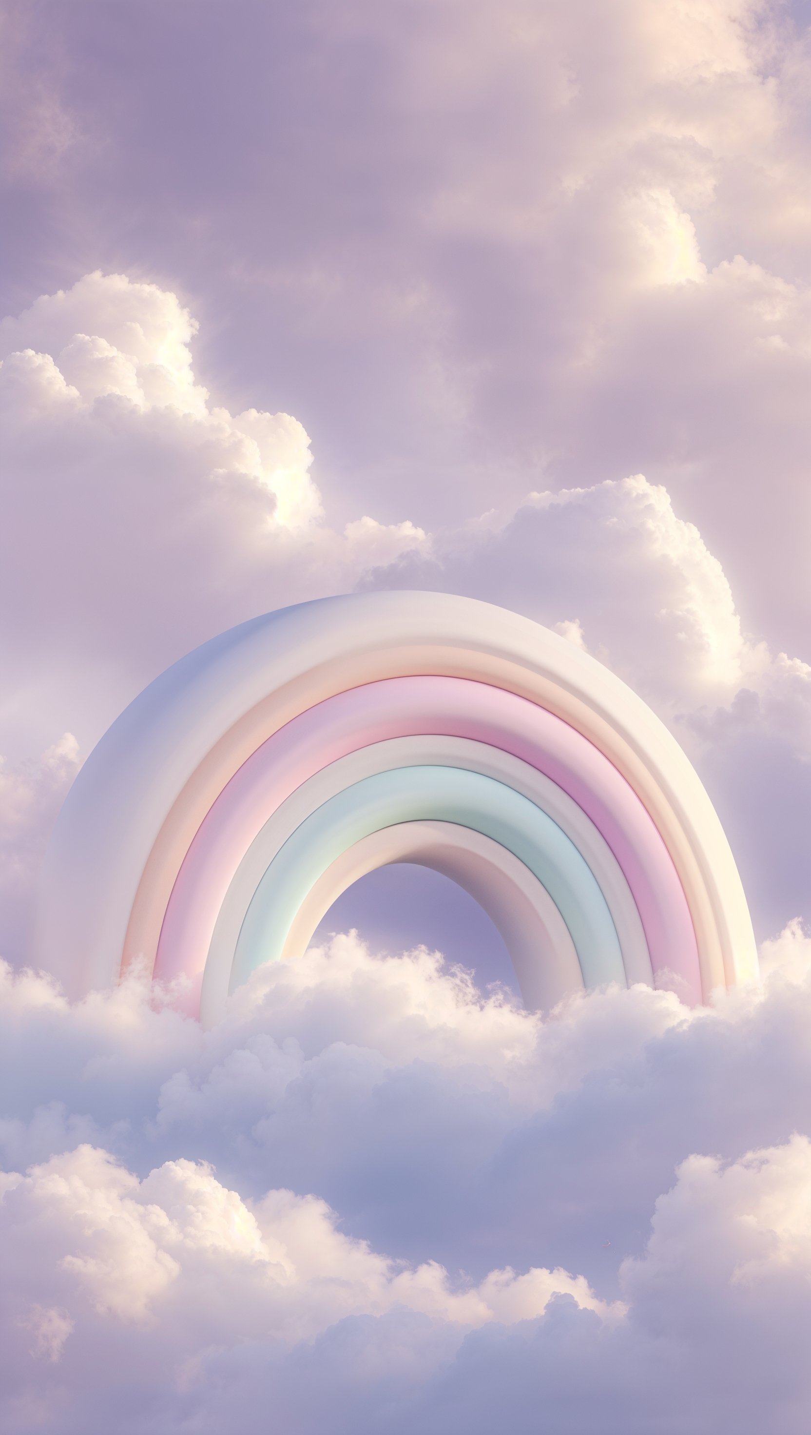 1664x2944 Soft rainbow on cloudy sky in pale pastel tones