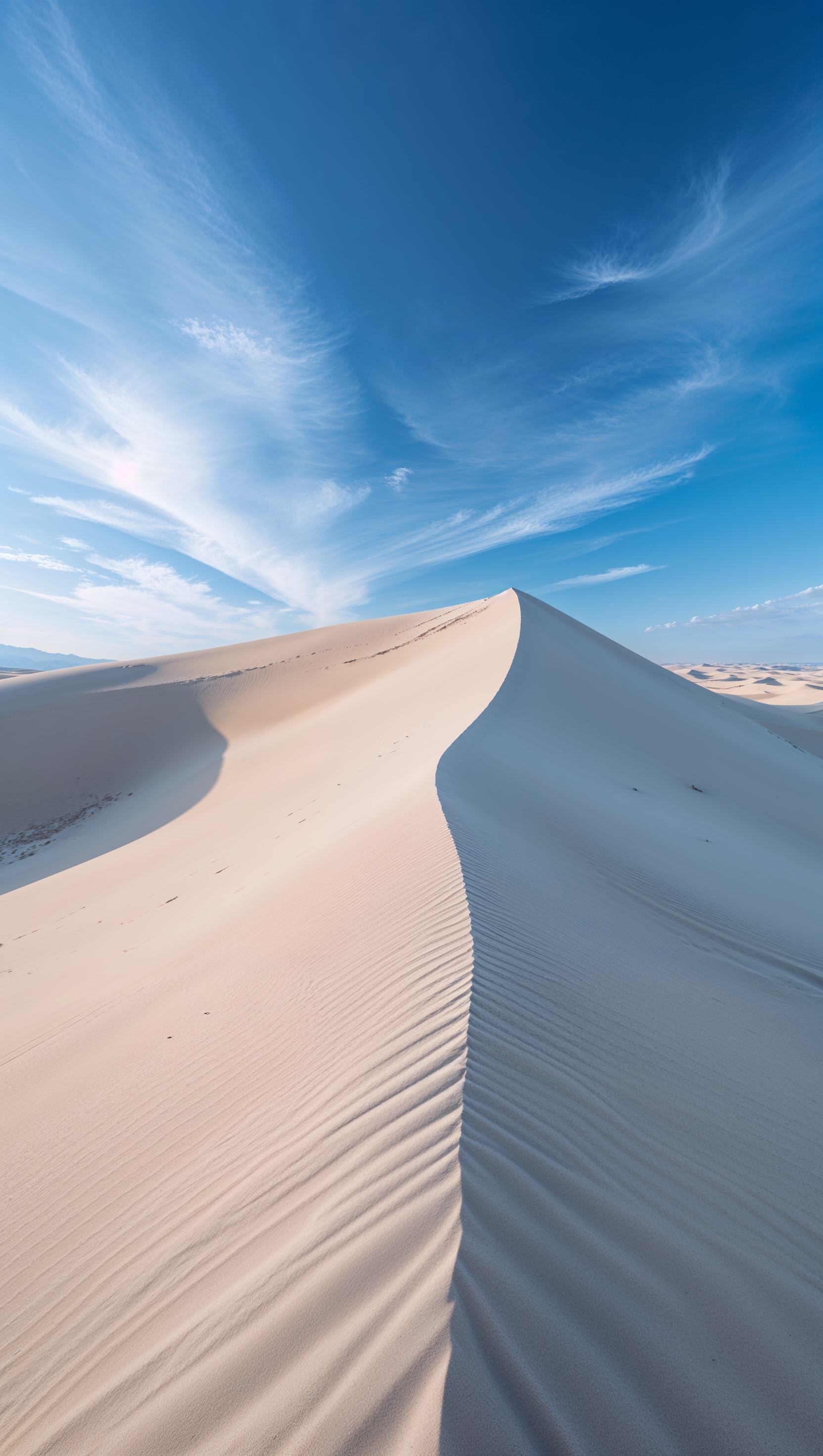 1664x2944 Soft sand dunes with minimal curves under clear sky, vertical shot
