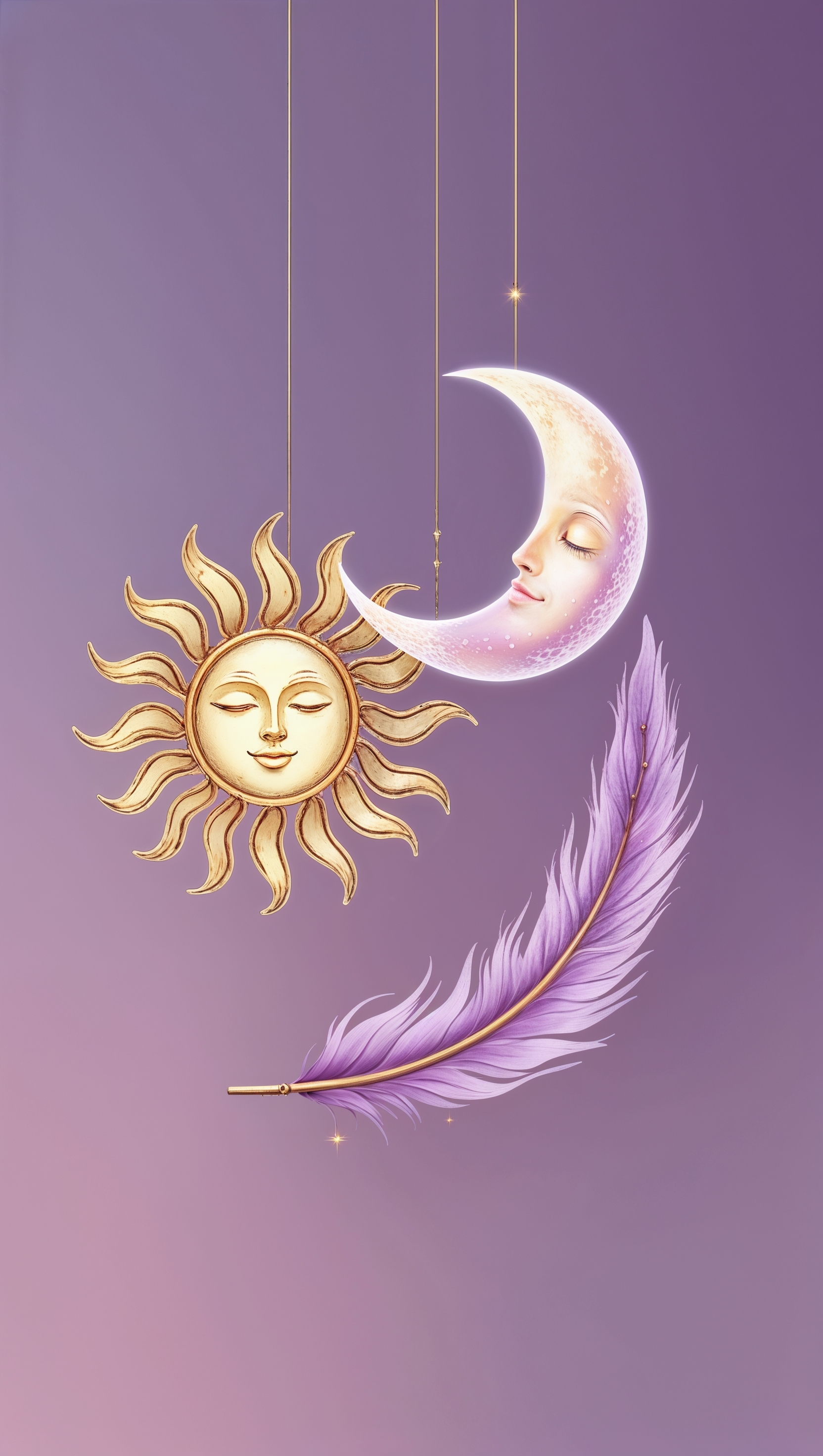 1664x2944 Celestial sun and moon icon set on soft purple background