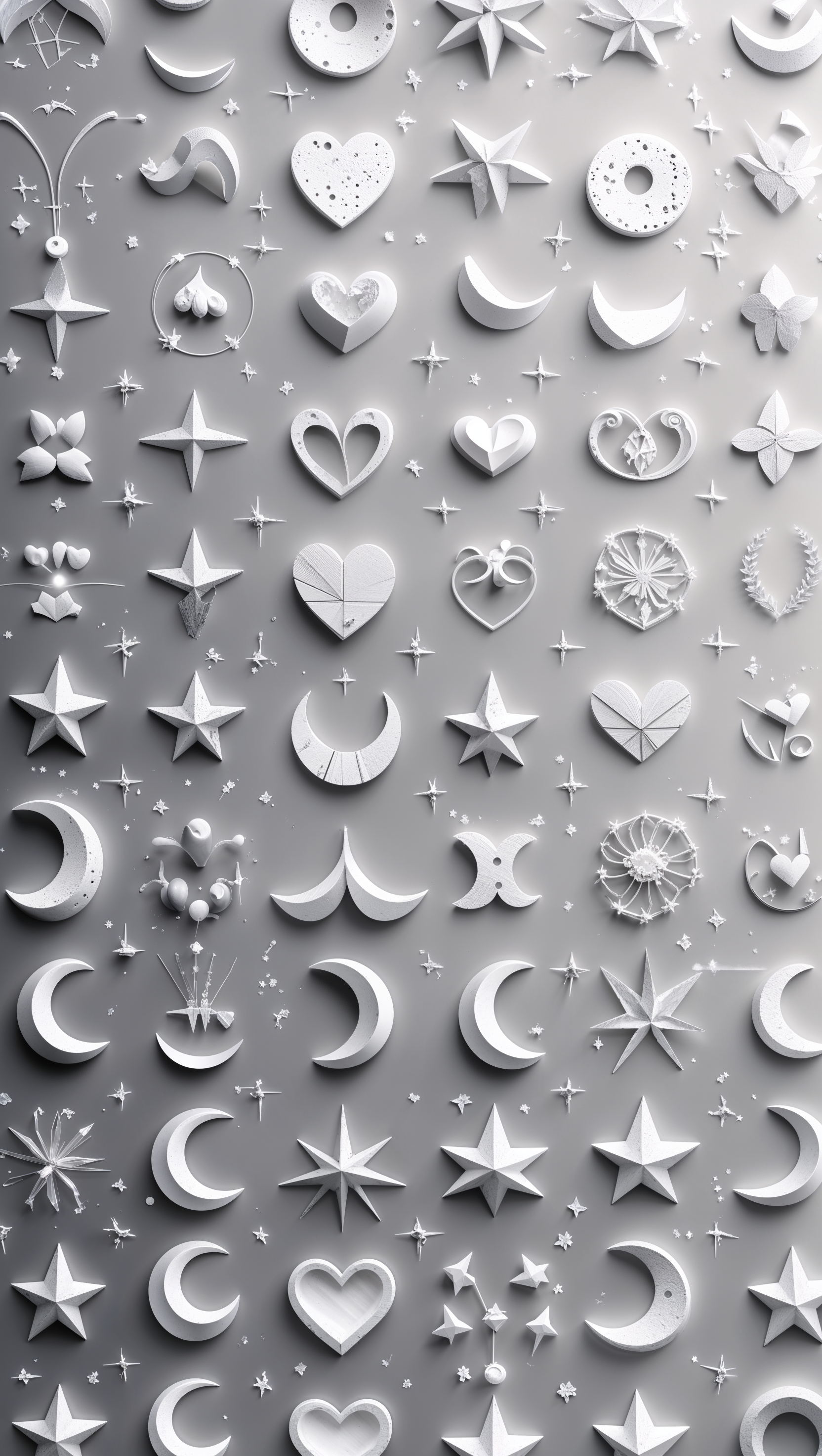 1664x2944 Monochrome aesthetic grid of tiny icons: moon, heart, wave, sparkles