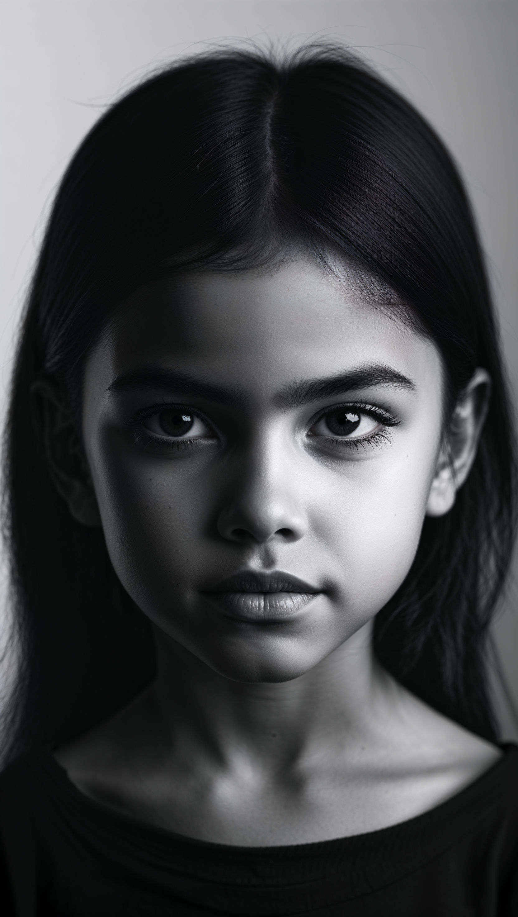 1664x2944 High contrast black and white portrait of confident girl with bold gaze