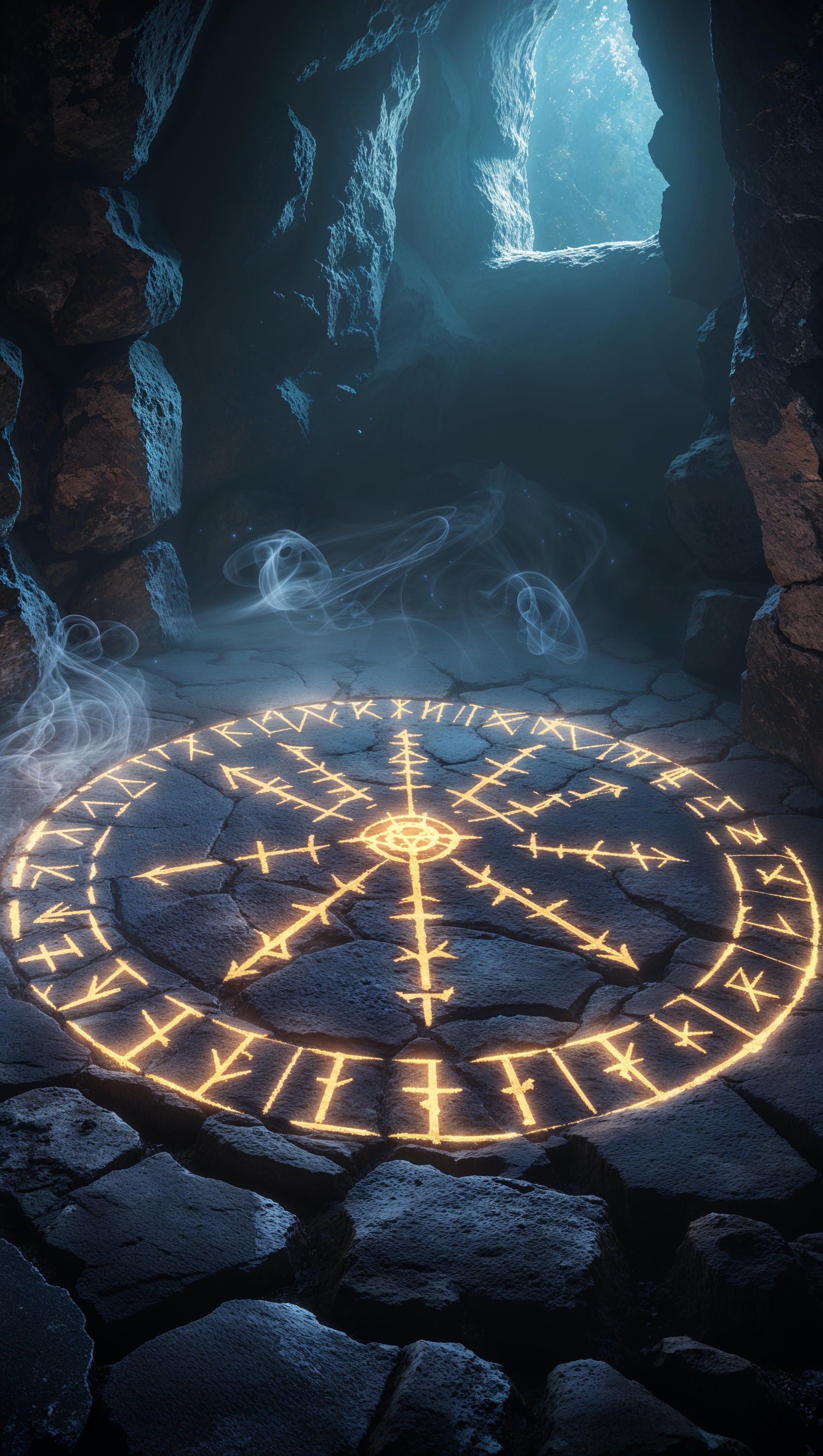 Mystical runes glowing on stone floor surrounded by shadows 1664x2944 Mystical runes glowing on stone floor surrounded by shadows