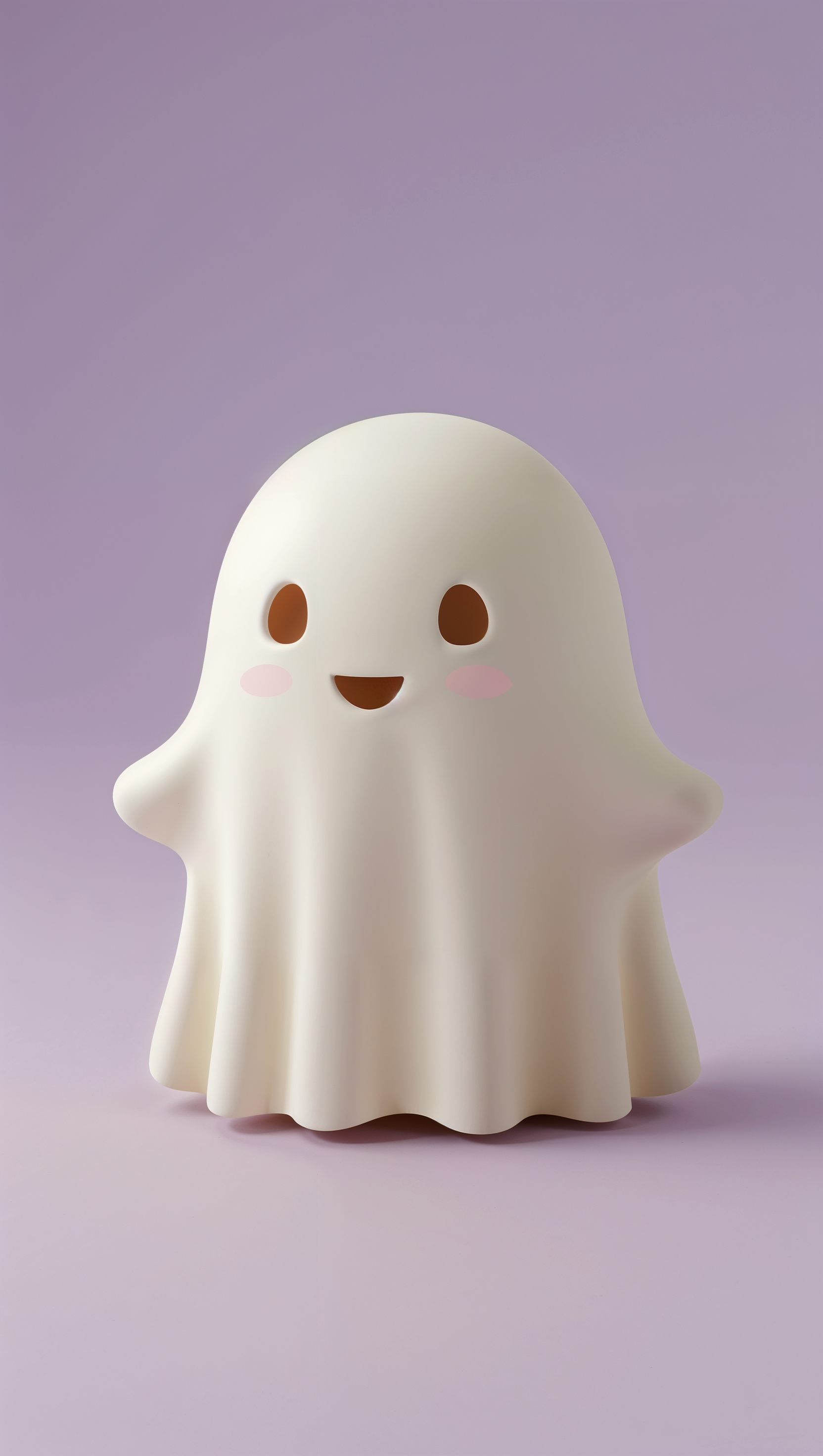 Minimal ghost icon in soft white on pastel purple background, kawaii style 1664x2944 Minimal ghost icon in soft white on pastel purple background, kawaii style