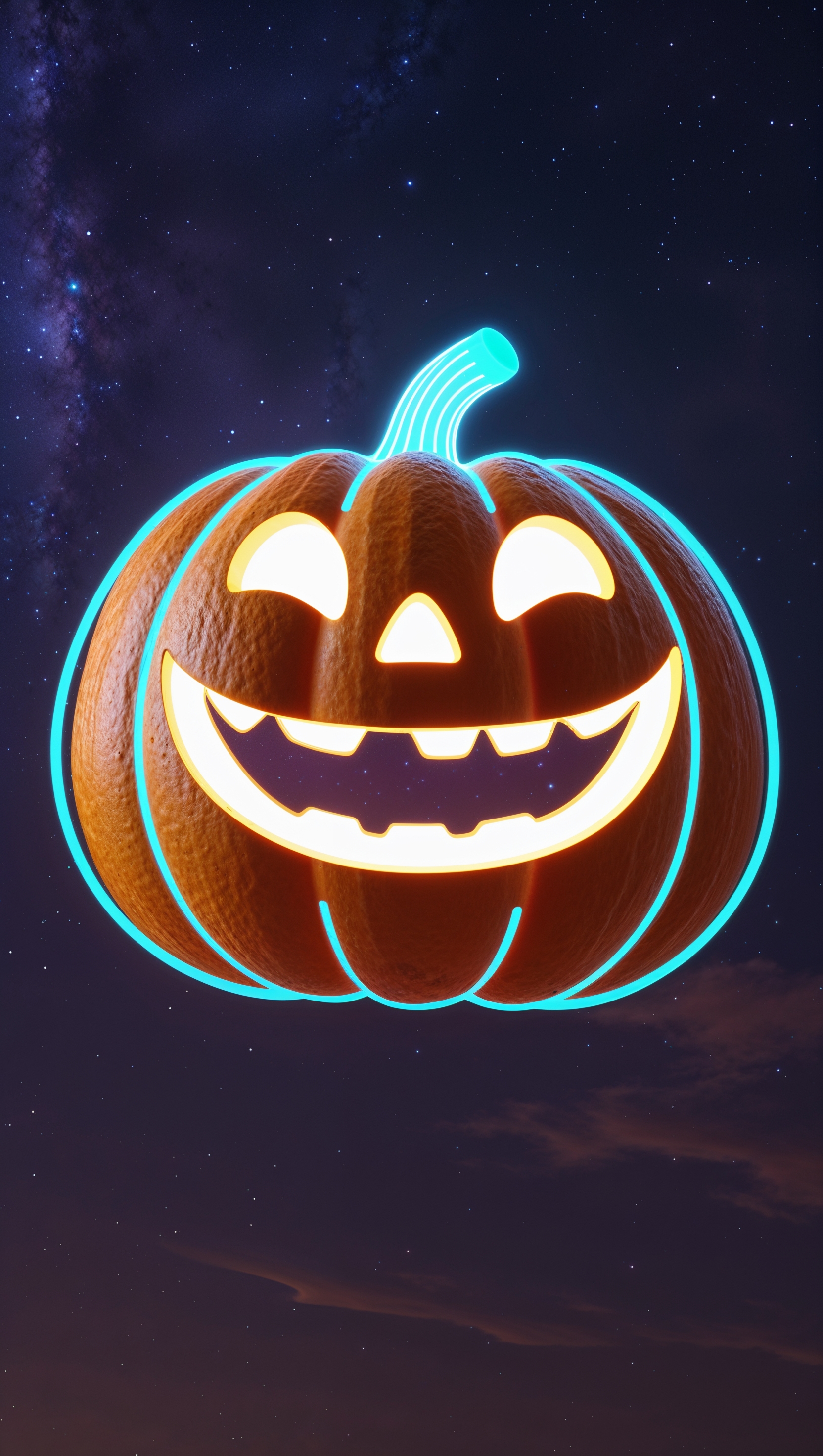 Smiling pumpkin face with neon outline on dark background 1664x2944 Smiling pumpkin face with neon outline on dark background