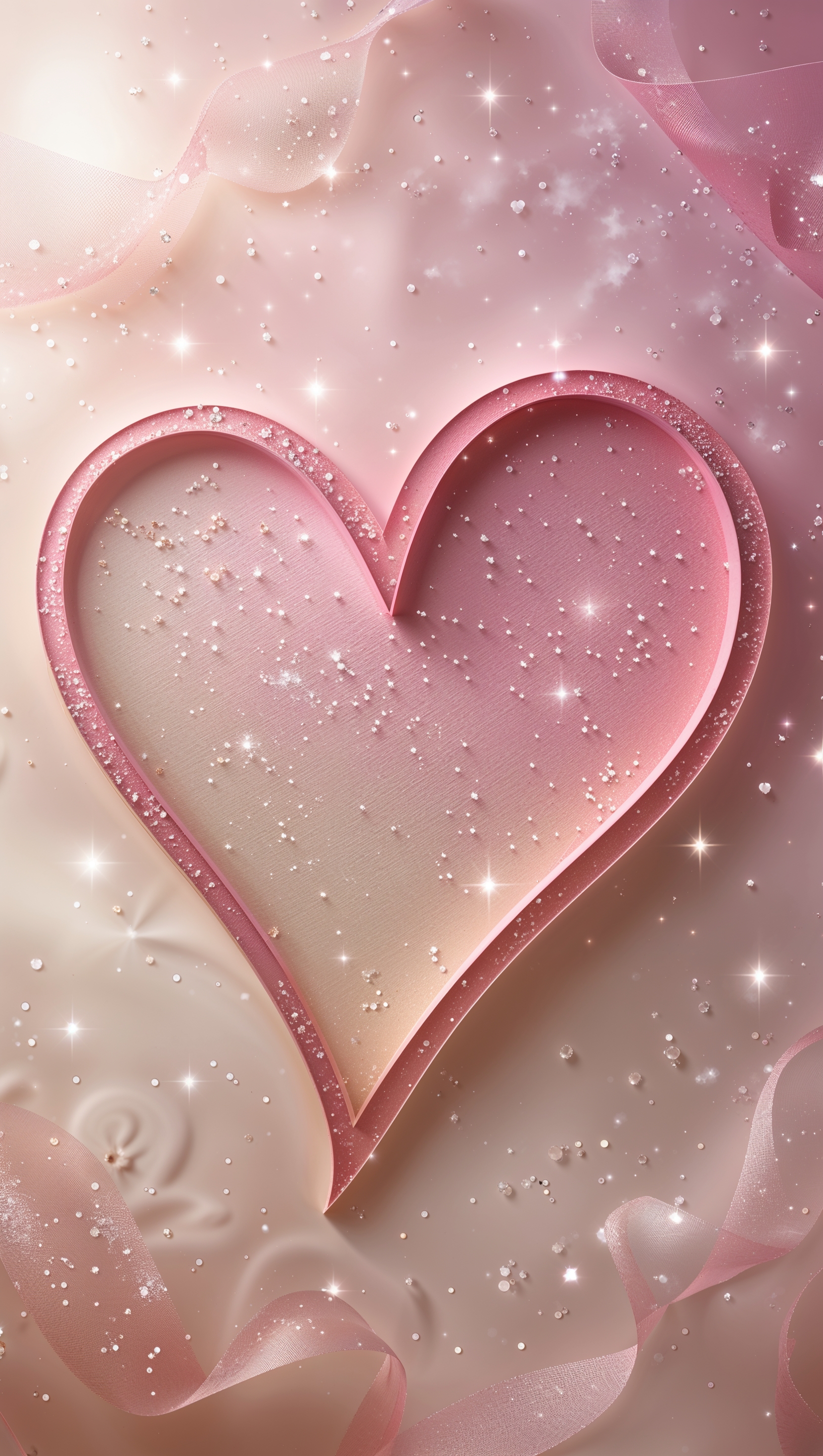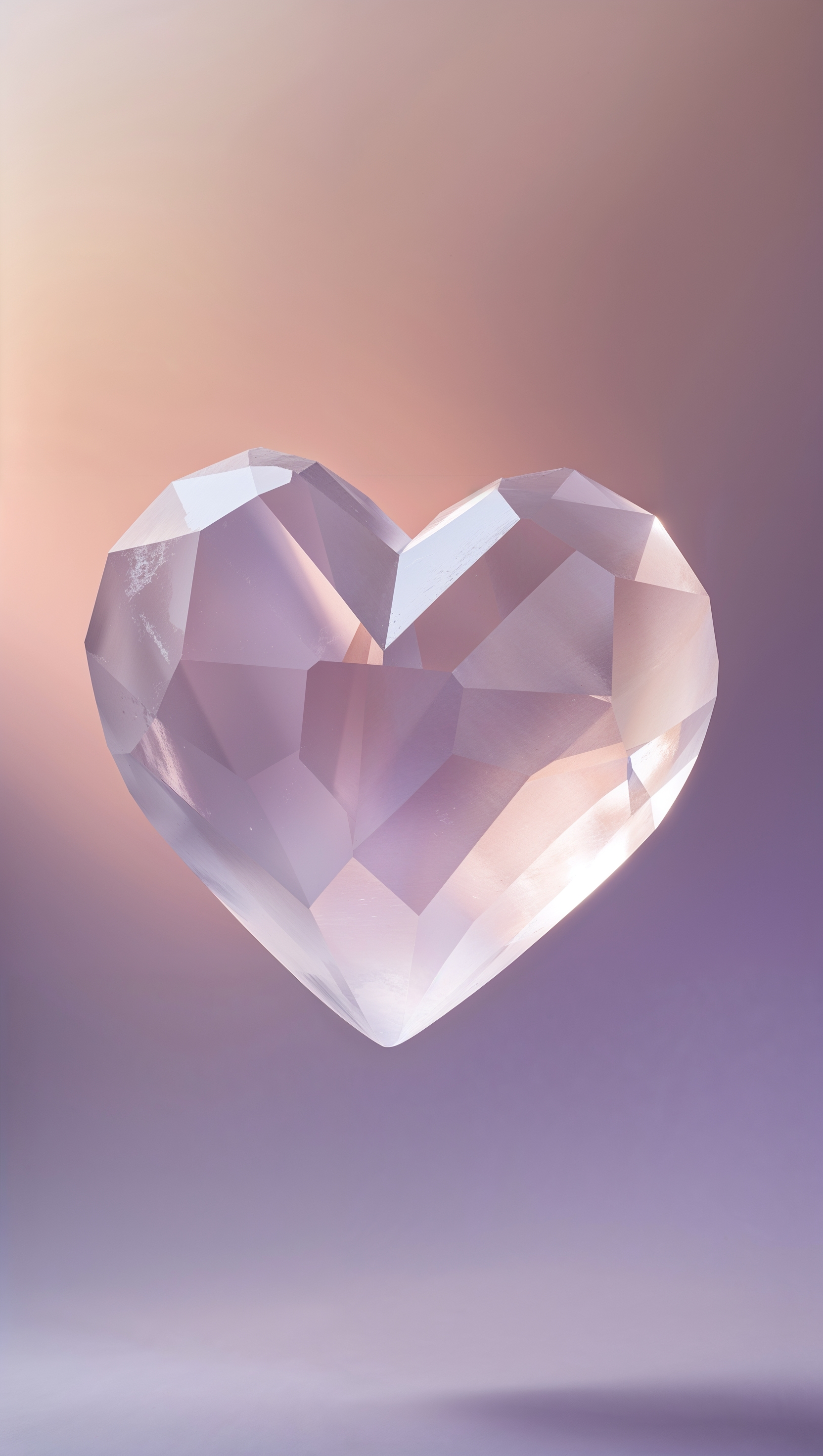 1664x2944 Heart-shaped crystal glowing on smooth pastel gradient